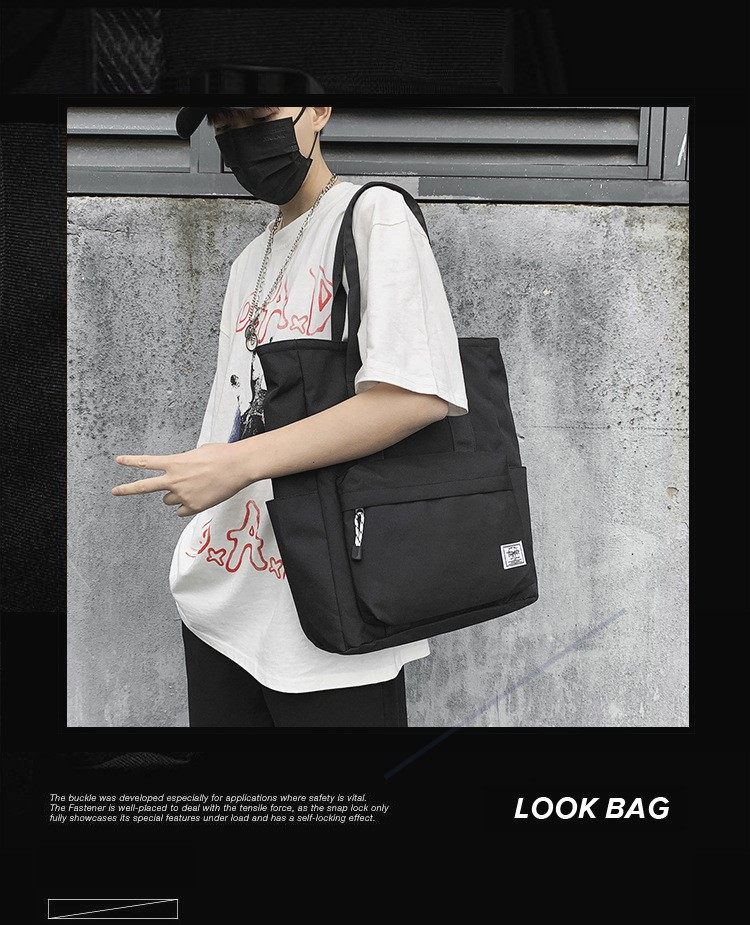 Canvas Bag for Boys, Large-Capacity Handbag for Junior High and High School Students, Tutoring Bag, Book Bag, Commuting Tote Bag
