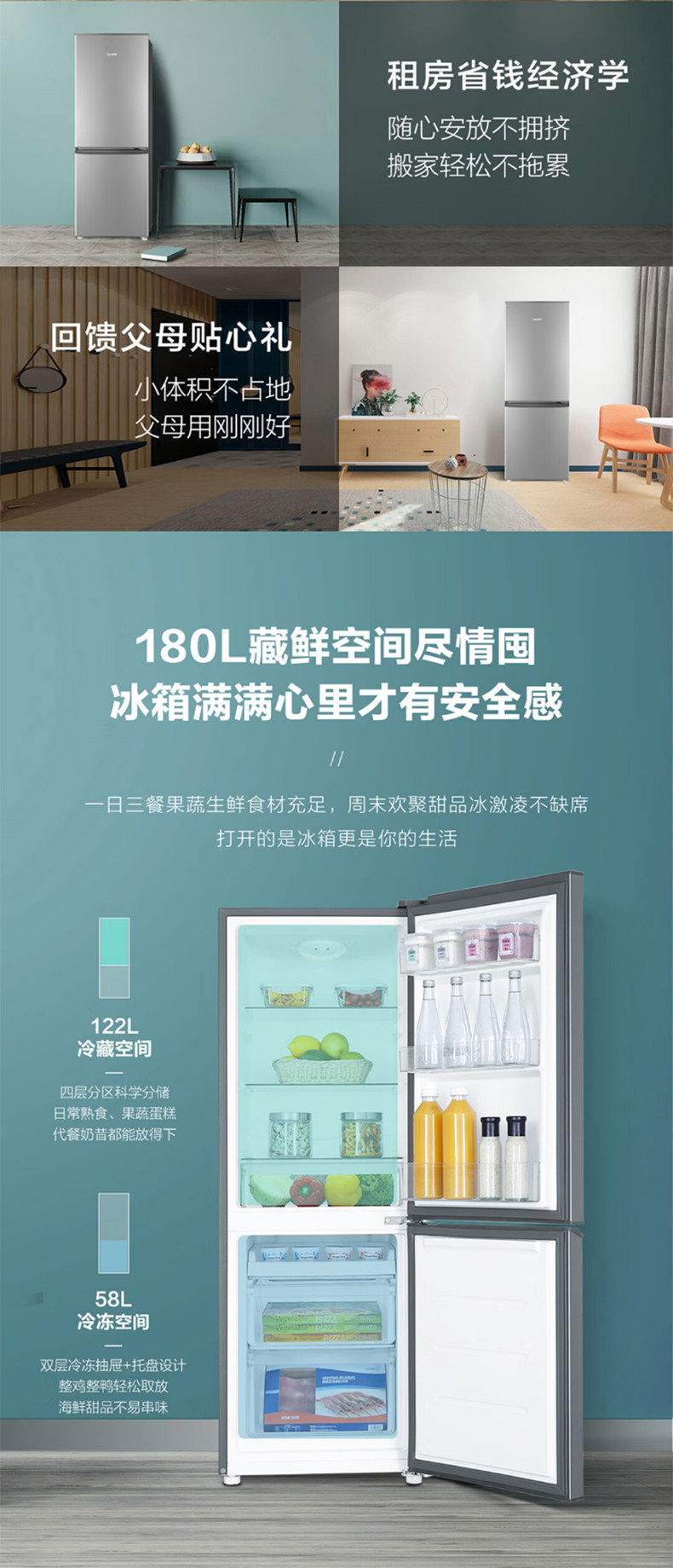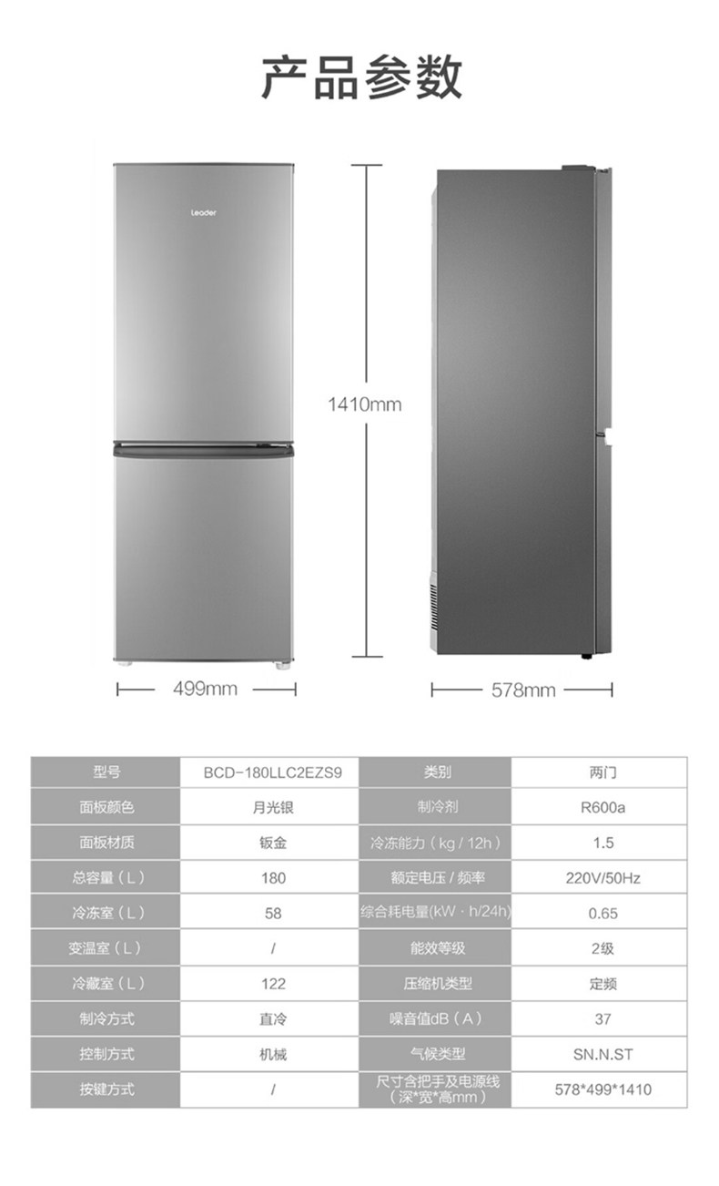 Haier Commander 180L refrigerator household double-door small refrigerator two-door three-door multi-door rental dormitory medium-sized