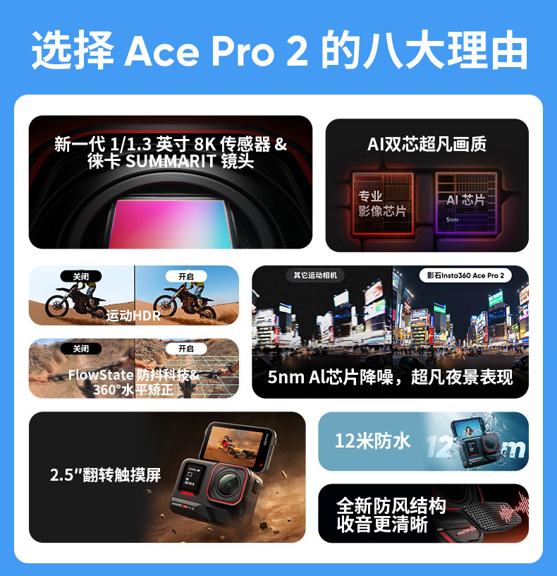 Shadowstone Insta360 Ace Pro 2 Action Camera Flagship Image Ai Intelligent Anti-Shake Cycling Vlog 966