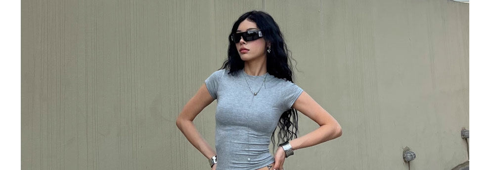 European and American Style Short-Sleeved T-Shirt for Women, 2025 Summer New Model, Waist-Cinching, Slim-Fitting, Flattering, Short and Stunning Top