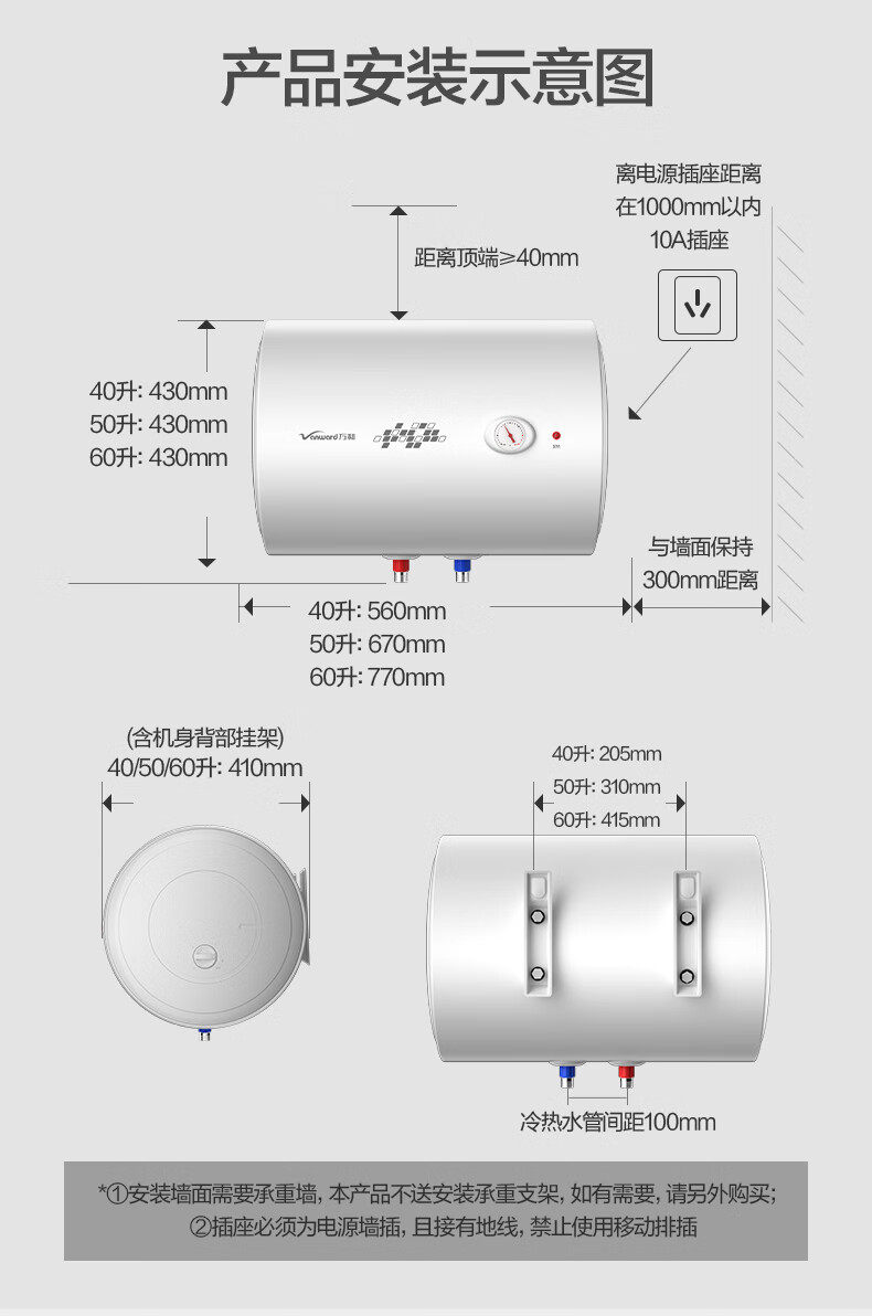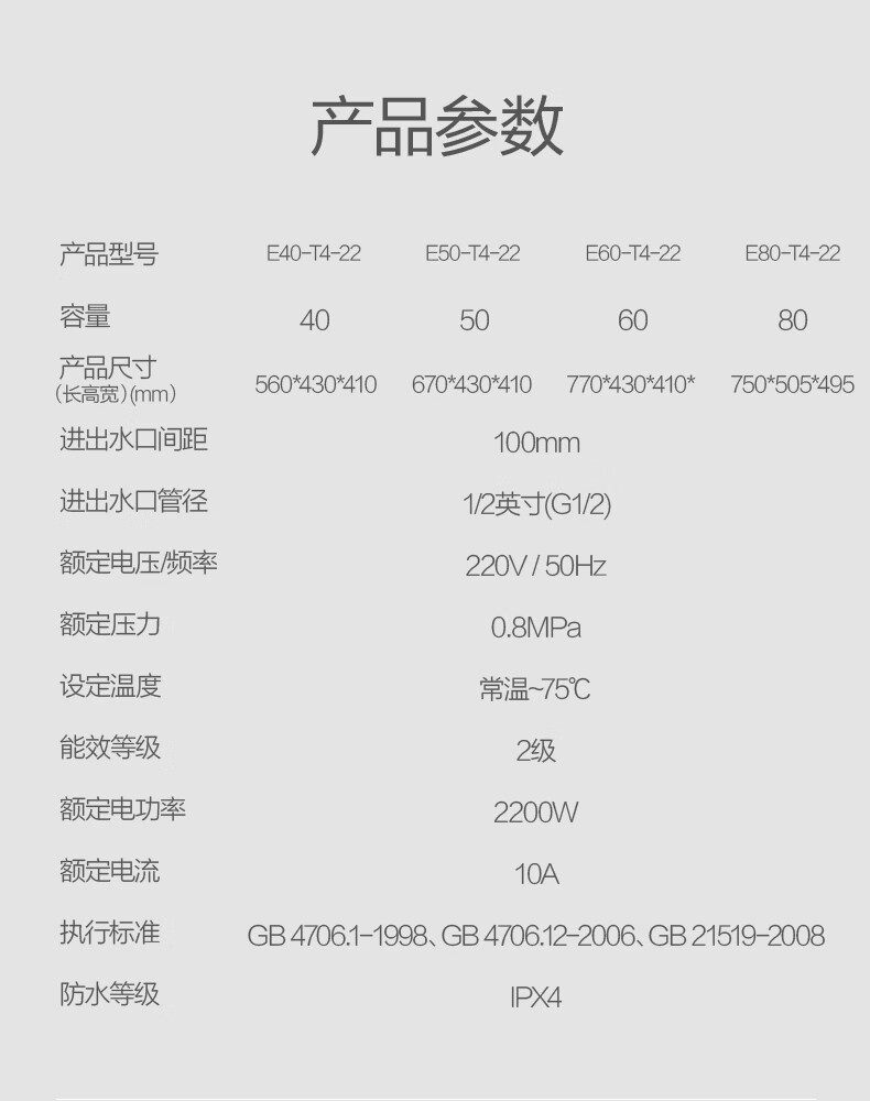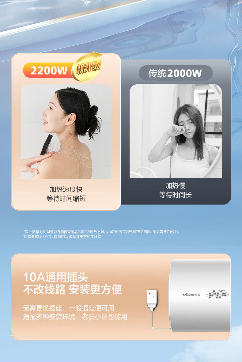 Vanward/Wanhe 50-Liter 2200W Water Heater Xiaobaiyun T4 Rental 40-Liter Energy-Saving Fast Heating E50-T4-22