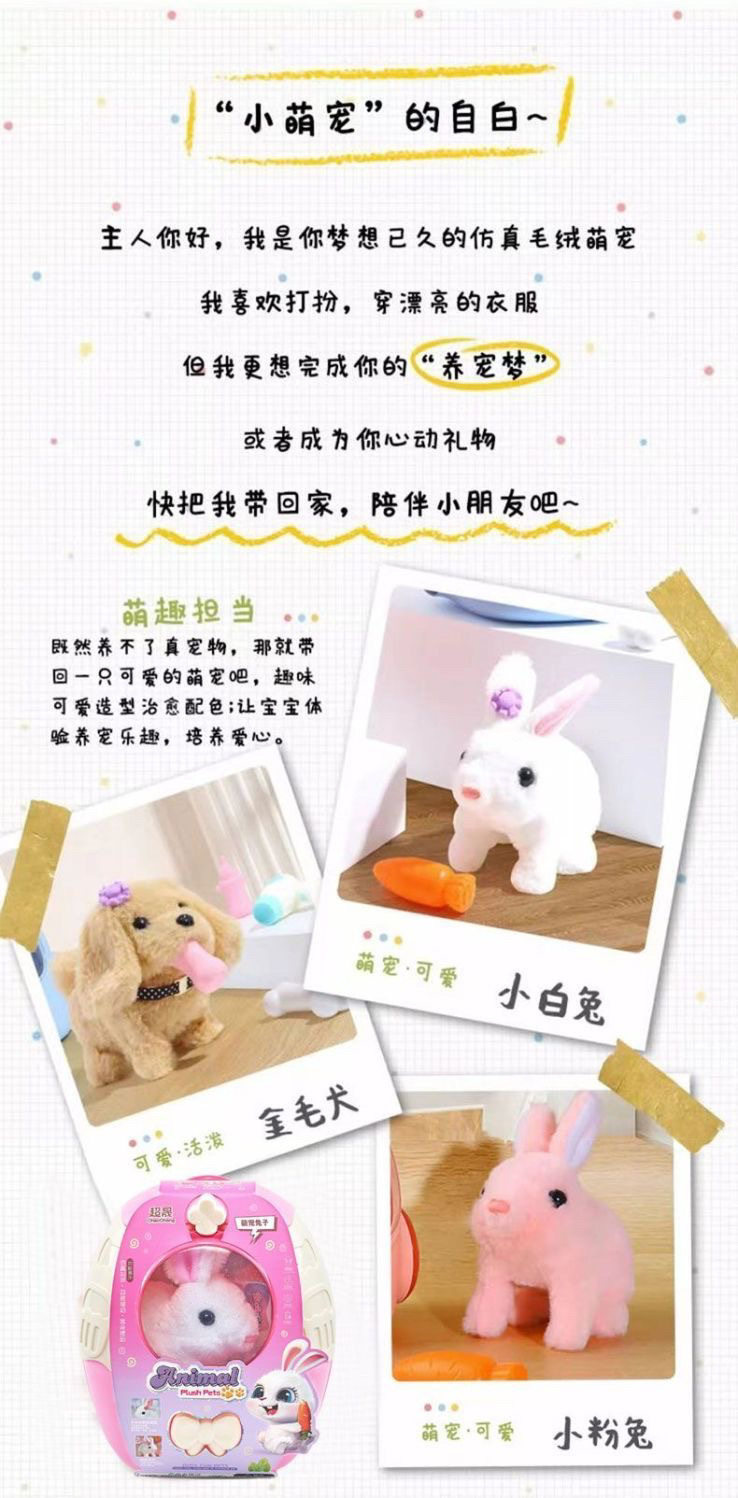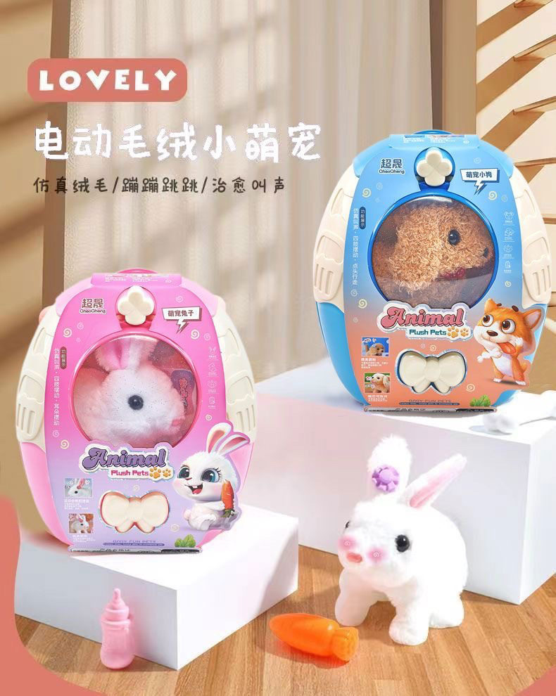 Chaosheng Electric Children's Stuffed Bunny Toy Can Bark and Walk Puppy Kitten Trolley Box Cute Pet Gift