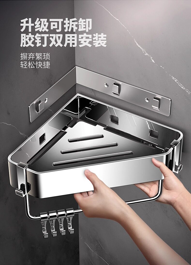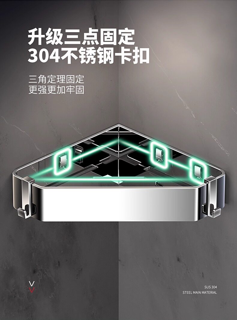 Italy Aisino Detachable Bathroom Shelf 304 Stainless Steel Triangular Bathroom Corner Shelf No Drilling Required