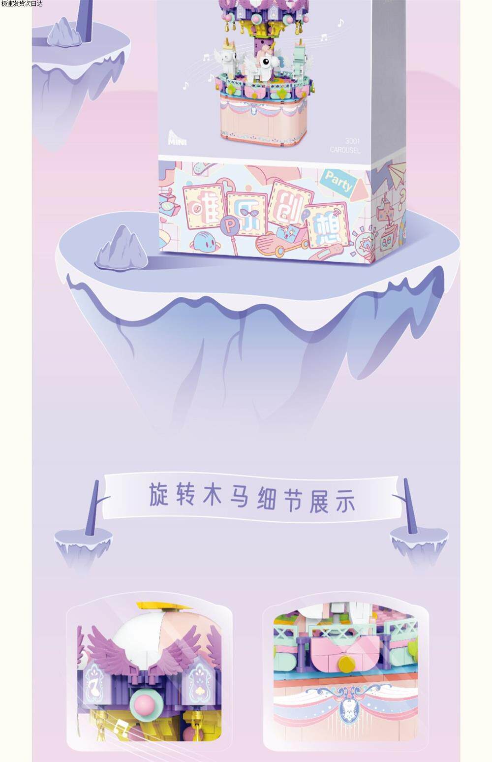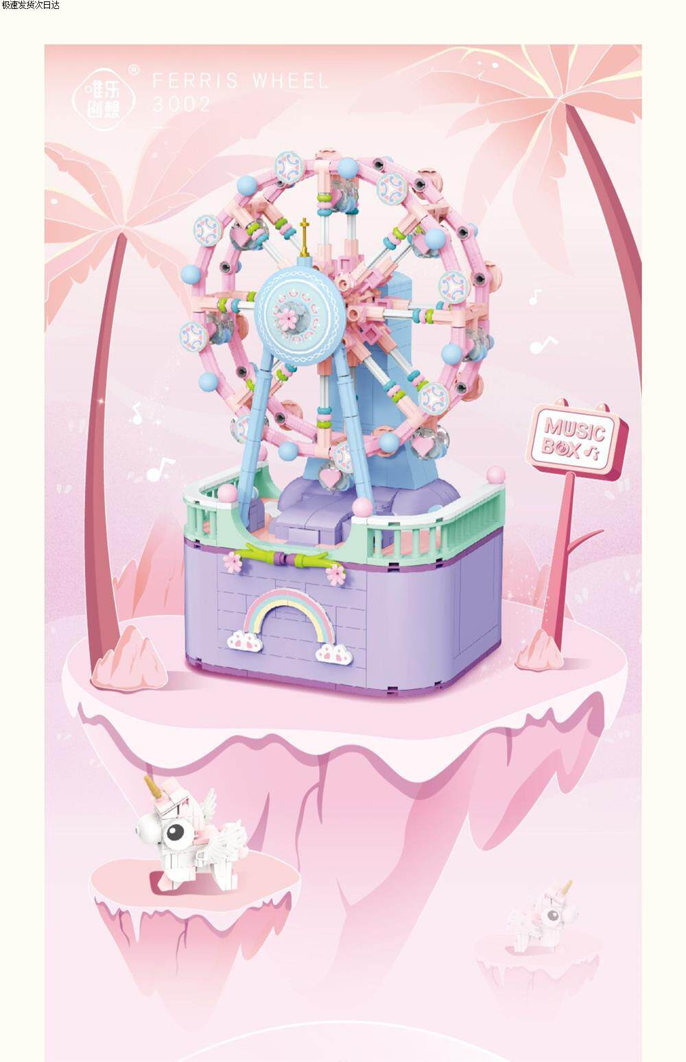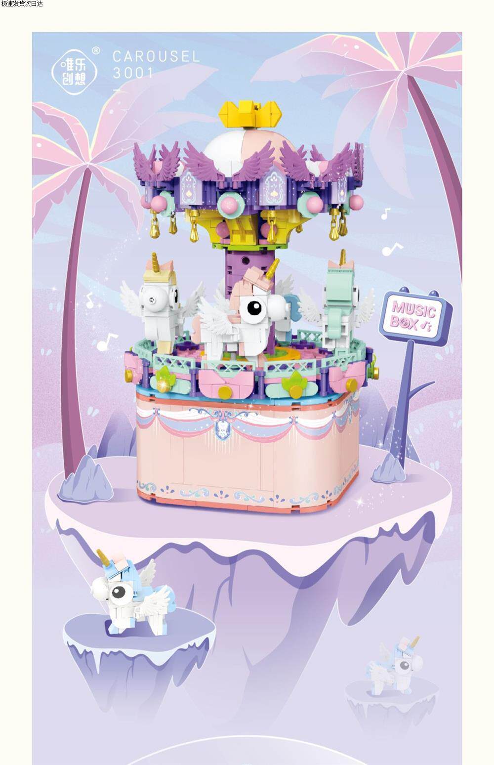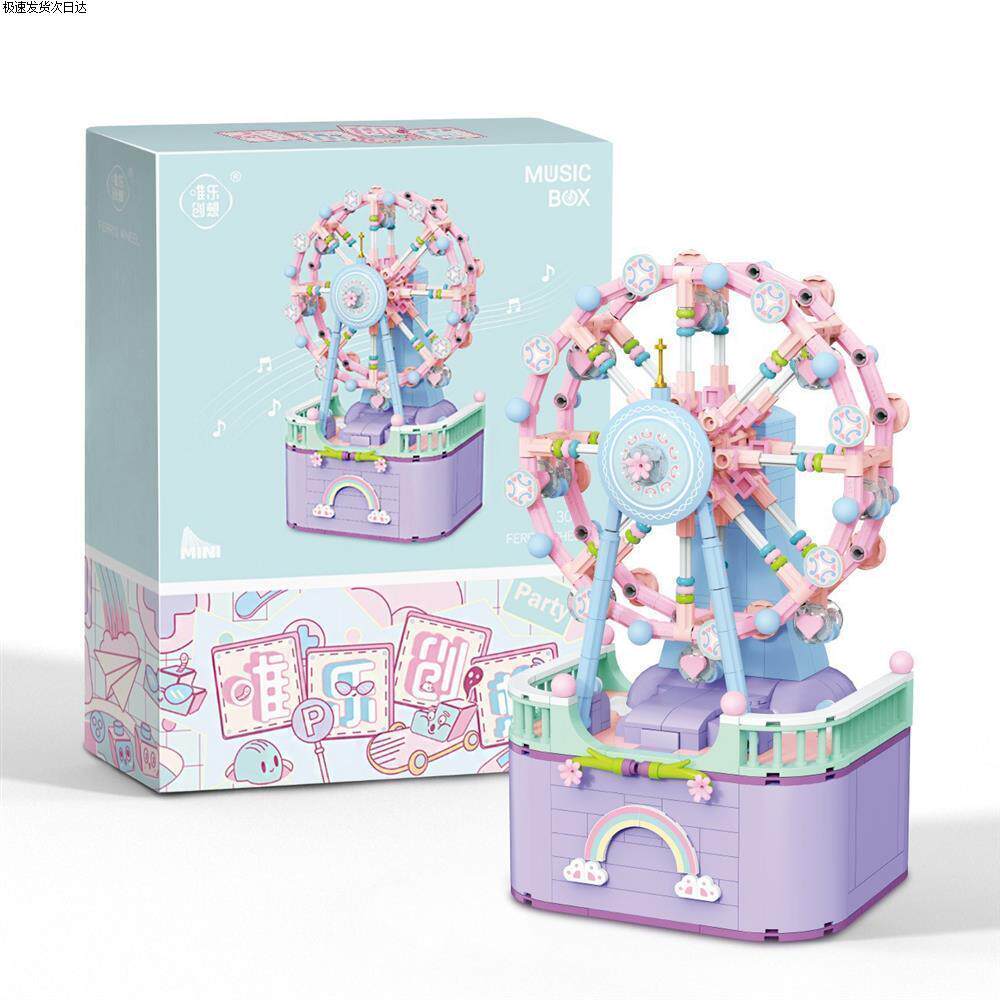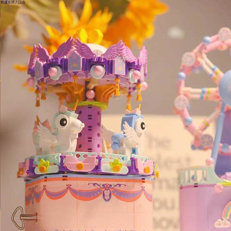 Carousel Ferris Wheel Assembly Small Particle Building Block Toy Music Box Gift for Girls and Best Friends, High Difficulty