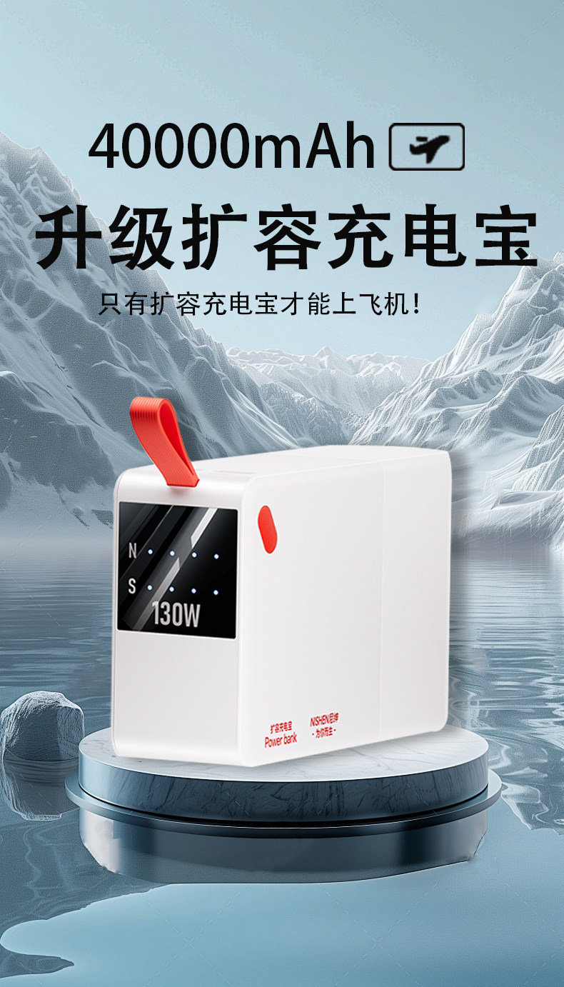 3c certified and can be used on airplanes Nishen power bank 40000 mAh 130W large capacity with built-in line 2025 new Xiaomi mobile power supply portable and lighting Apple Huawei dedicated fast charger