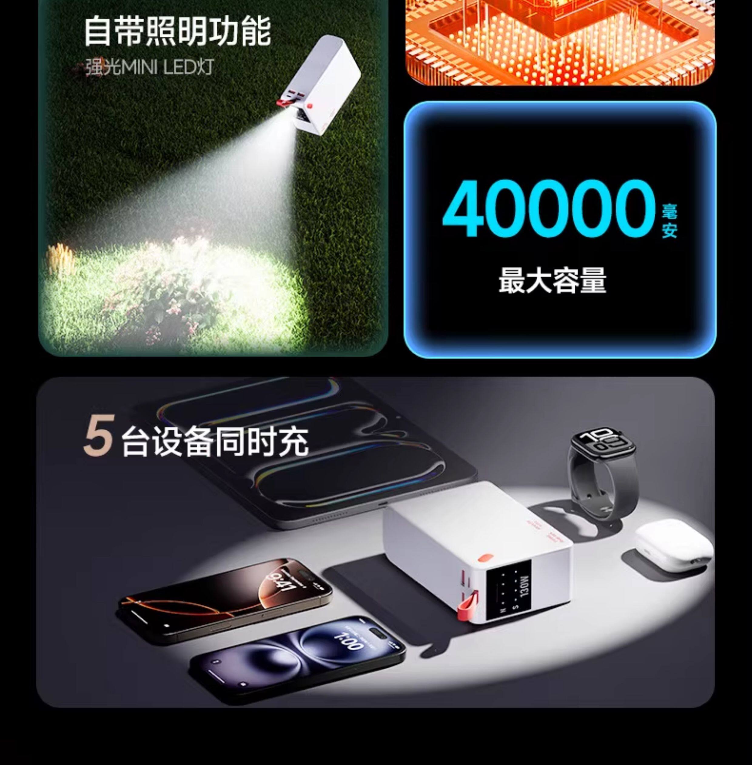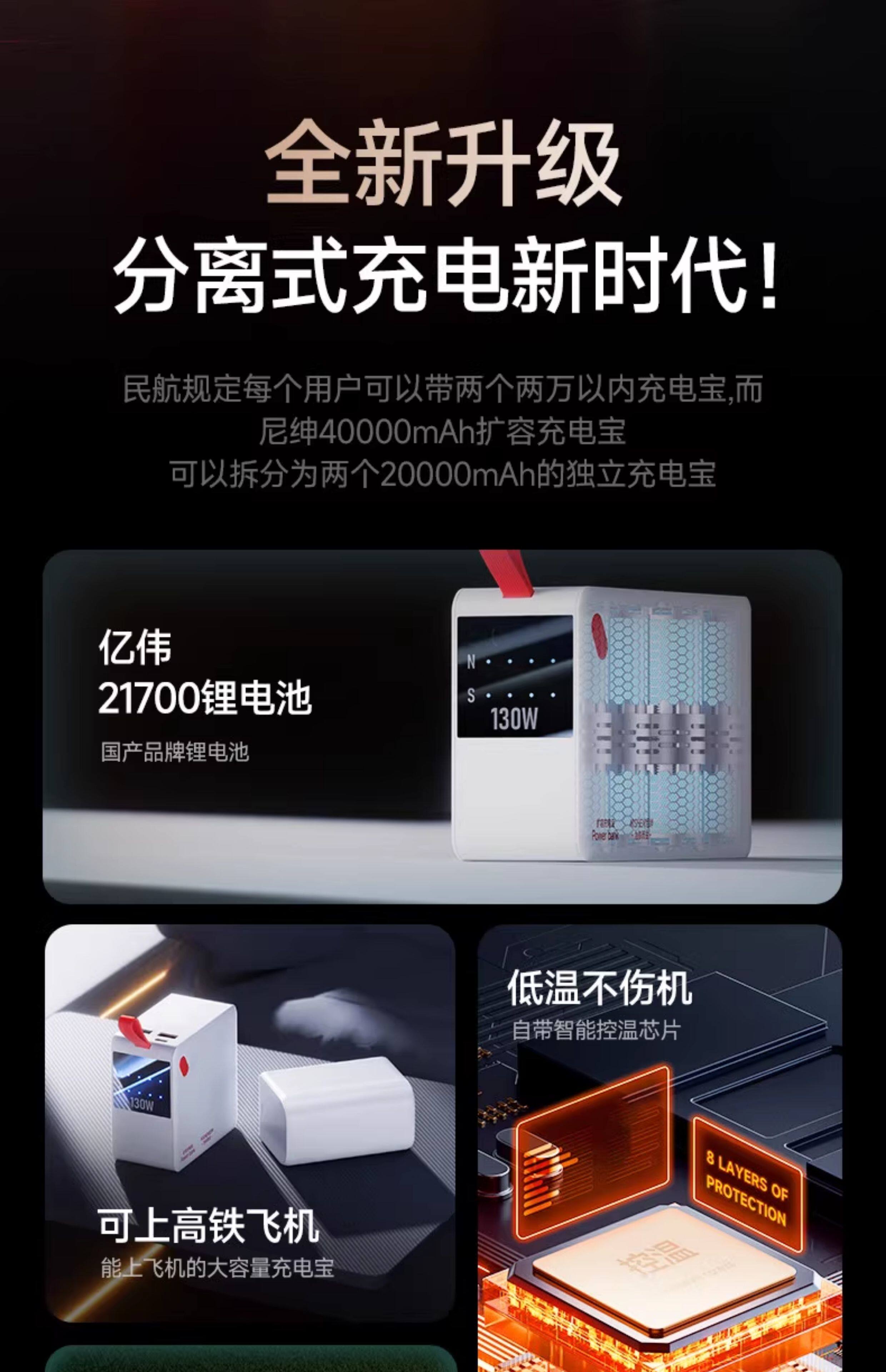 3c certified and can be used on airplanes 130W Nishen 40000 mAh 20000 large capacity 2025 new dedicated fast charge, compact and portable power bank Xiaomi mobile power supply can illuminate Apple Huawei