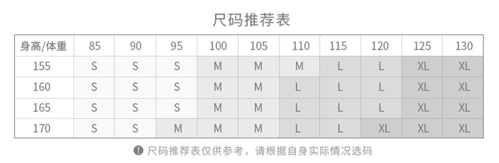 China (cm) 160-165/84-86 165-170 / 88-90 167-172 / 92-96 168-173 / 98-102 170-176 / 106-110