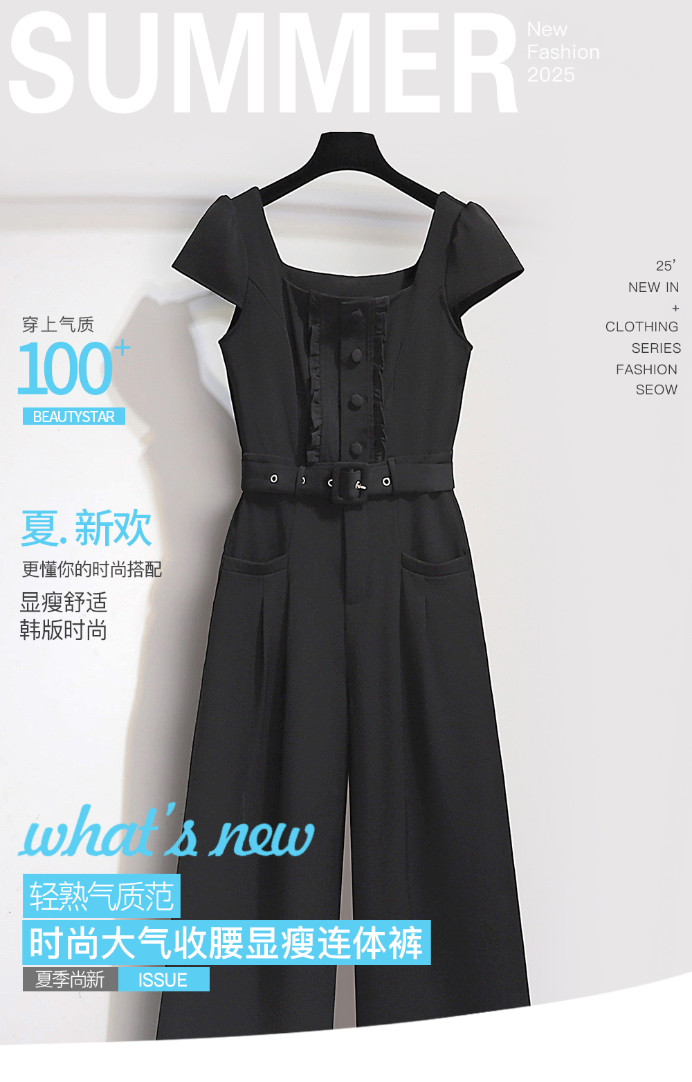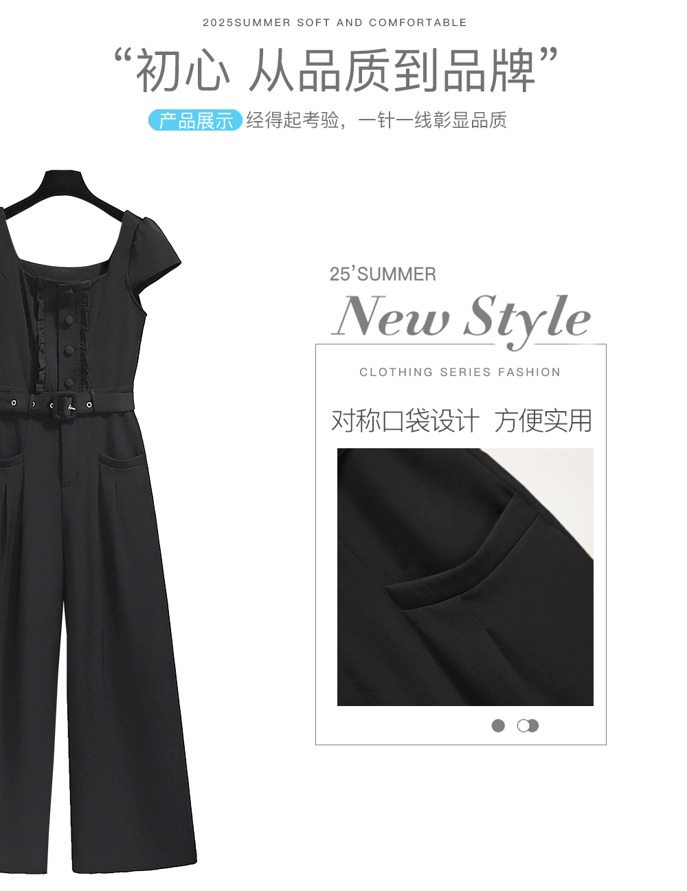 Black One-Piece Suit for Women, Summer Thin Style, 2026 New Fashion, French Style, Elegant One-Piece Jumpsuit with Wide-Leg Pants