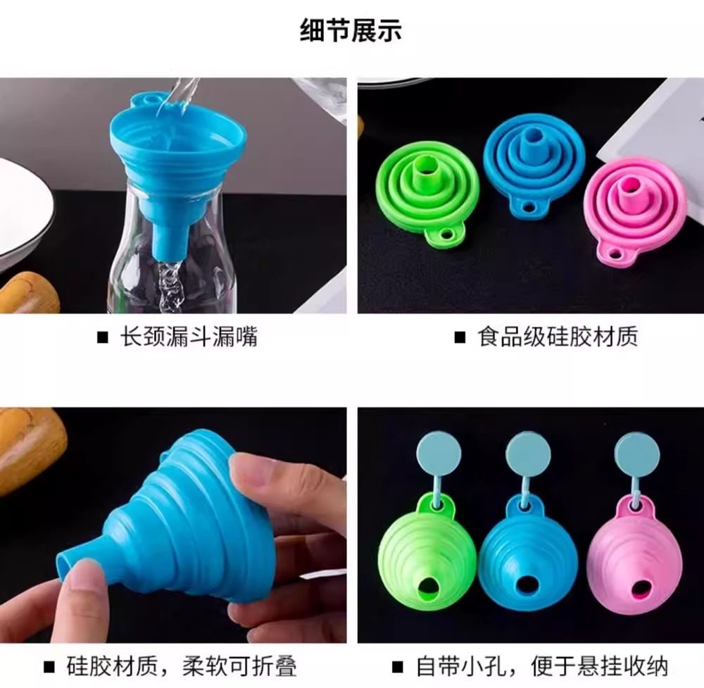 Household Funnel Silicone Foldable Food Grade Kitchen Refueling Size Diameter Liquid Separation Multifunctional Funnel