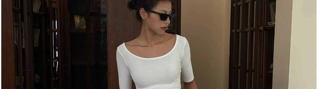Tight-Fitting Hot Girl U-Neck Collarbone-Exposing Mid-Sleeve T-Shirt for Women, Summer 2025 New Popular Sexy Short Inner Top