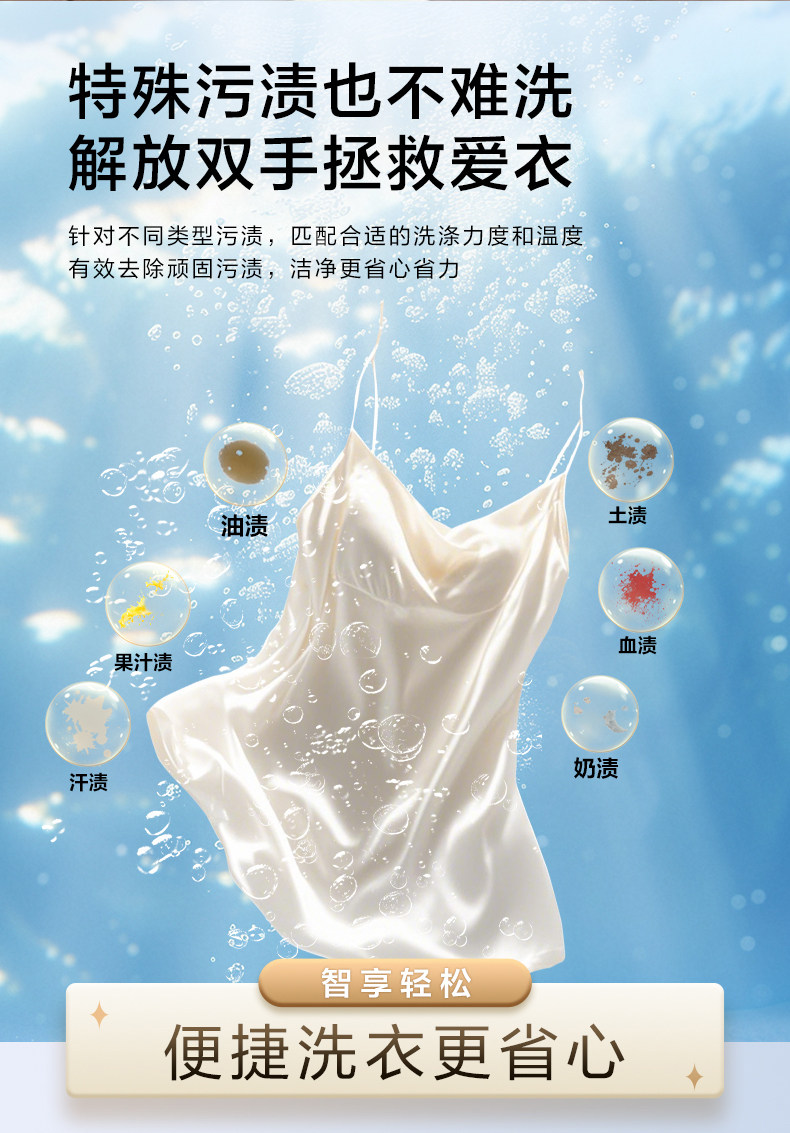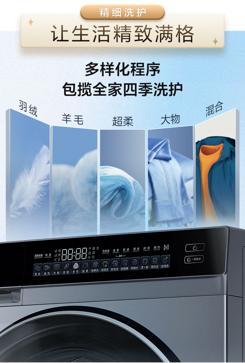 Laundry Procedures Self-Cleaning Tube,Super Soft Wash,Floating Off,Stubborn Stain Wash,Anti-Mite Wash,Mixed Wash,Single Dehydration,Quick Wash,Big Thing,Down Wash,Wool Wash