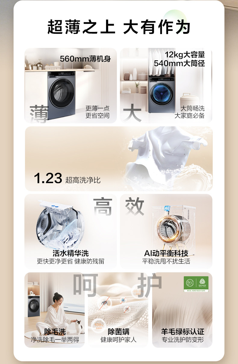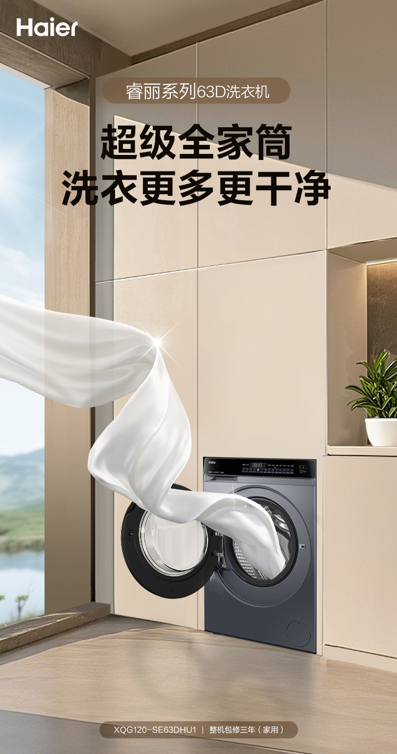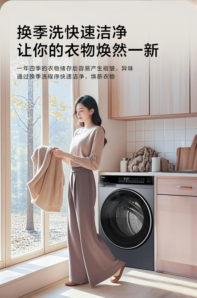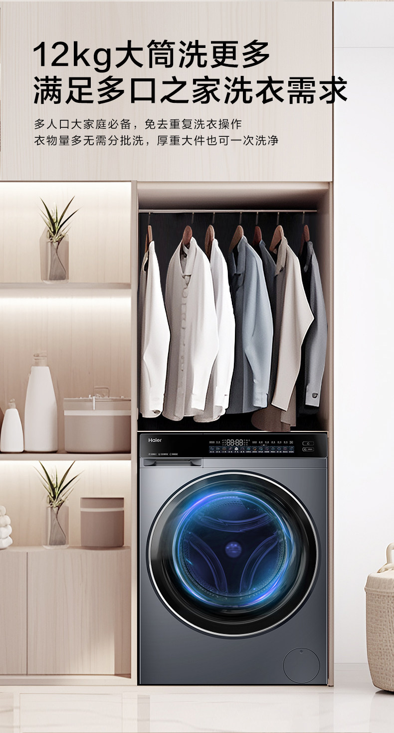 [540mm Drum Diameter] Haier Drum Washing Machine for Home Use, Fully Automatic, Ultra-Thin, 12kg Large Capacity, Wash-And-Dry Integrated 63D