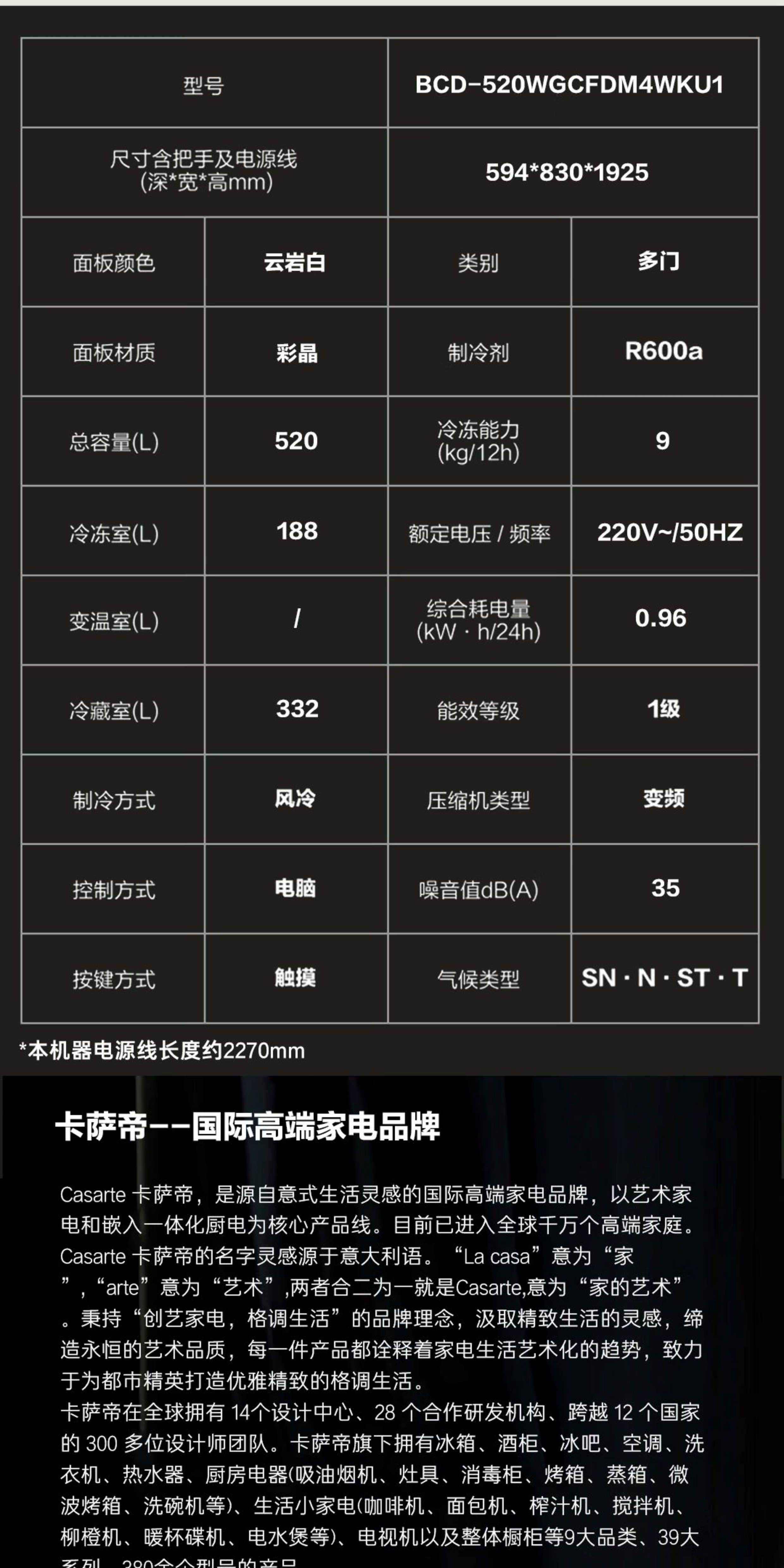 Refrigerator Freezer Brand Casarte/Casarte