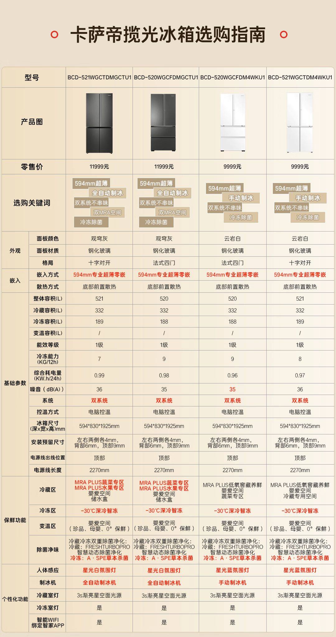 Color Classification 520Wgcfdm4Wku1 (Yunyan White + Mobile Ice Box),520Wgcfdmgctu1 (Guanqiong Gray + Automatic Ice Making),520Wgcfdm4Wku1 (Grey-Without Ice Making),520Wgcfdmgctu1 (White + Automatic Ice Making)