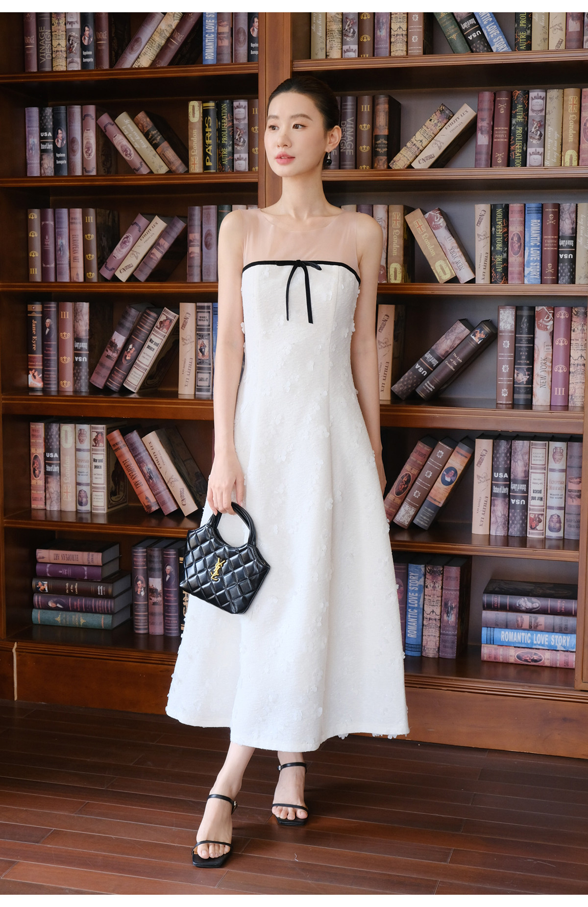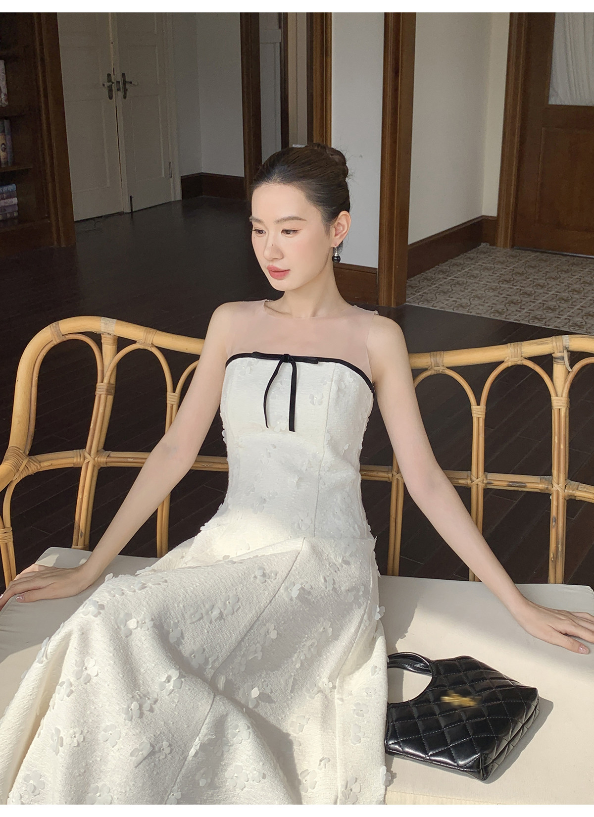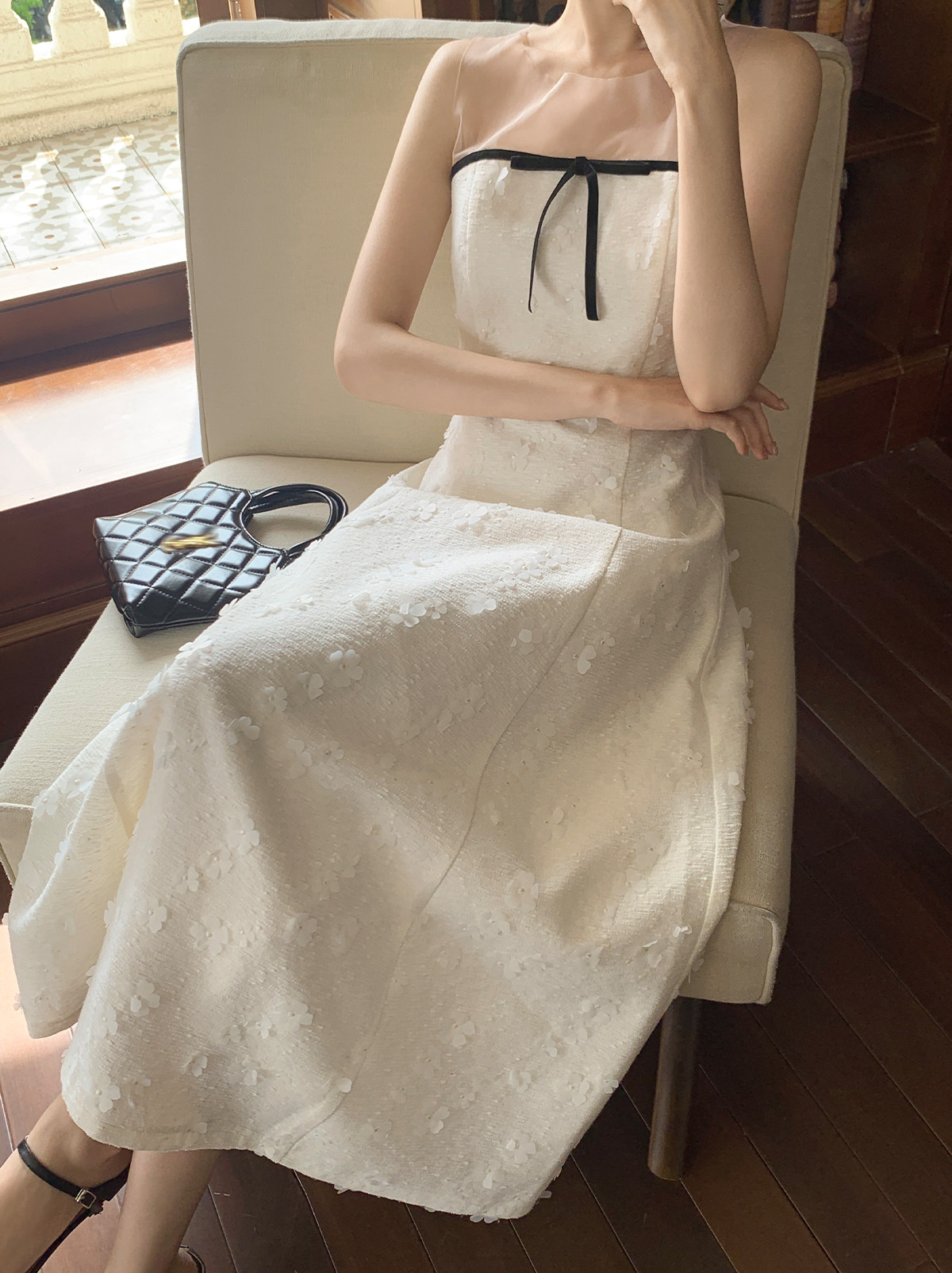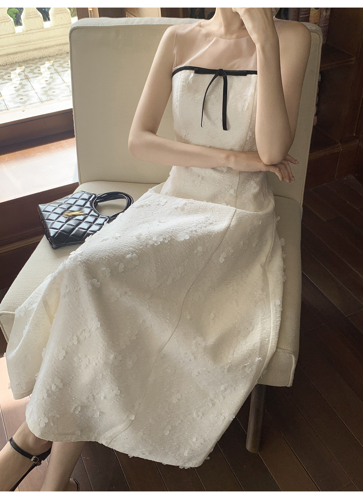 Xxning French-Style Patchwork Mesh Three-Dimensional Flower Vest Dress for Women, Autumn Exquisite and Elegant Long Dress