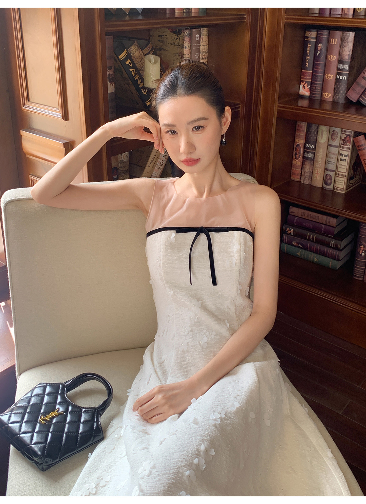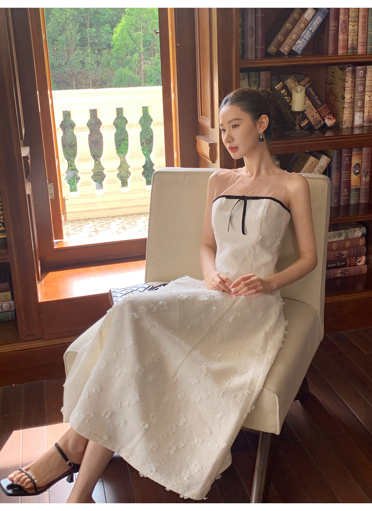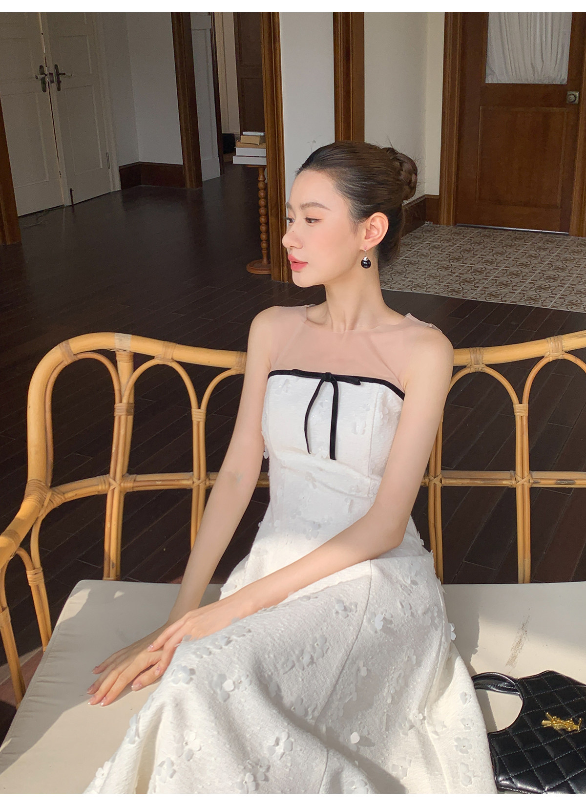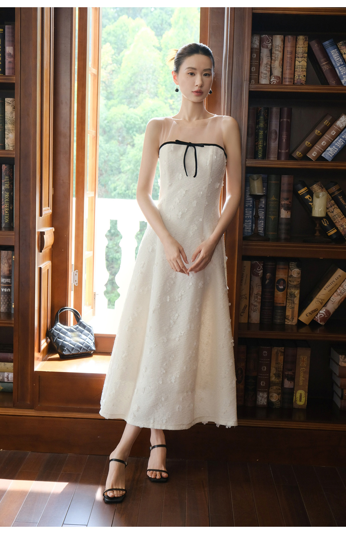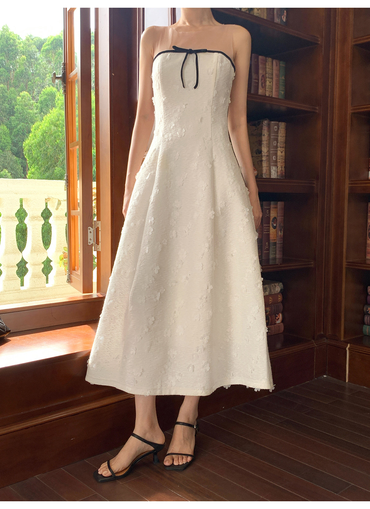 Xxning French-Style Patchwork Mesh Three-Dimensional Flower Vest Dress for Women, Autumn Exquisite and Elegant Long Dress