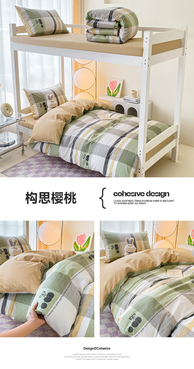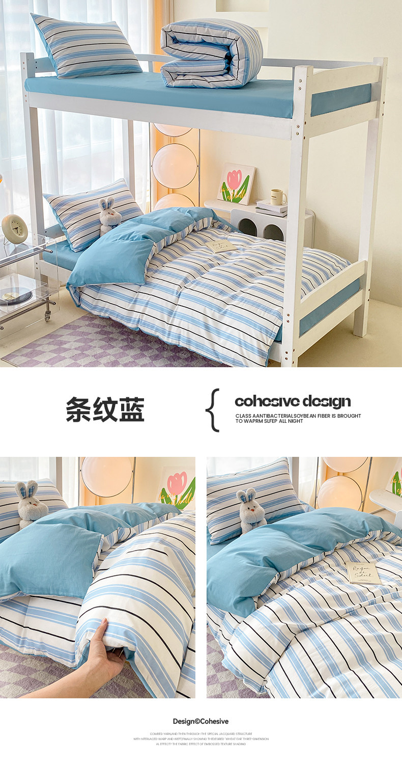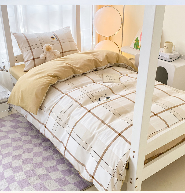 Yalu 2025 new cotton student dormitory bed three-piece set pure cotton dormitory single bed bedding set of six