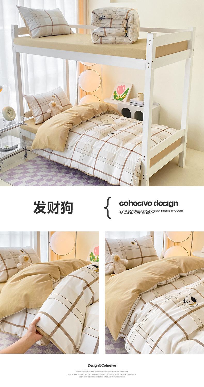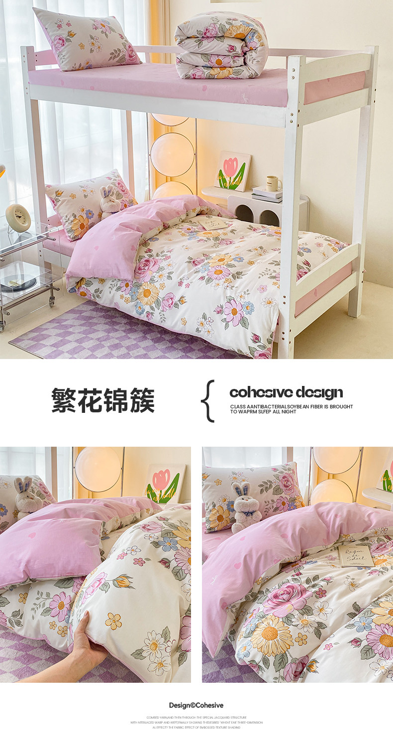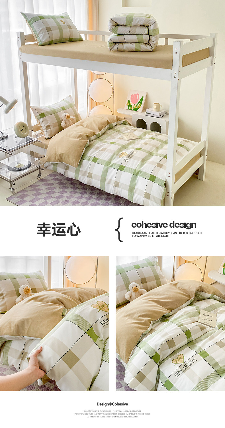 Yalu 2025 new cotton student dormitory bed three-piece set pure cotton dormitory single bed bedding set of six