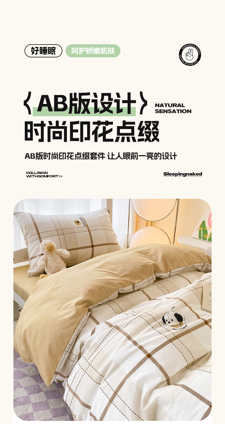 Applicable bed size 0.9m three-piece student bed set, quilt cover 150x200cm, sheets 120x230cm,1.2m bed sheet three-piece set, quilt cover 150x200cm, bed sheet 160x230cm,0.9m student bed four-piece set three-piece set + pillow core,1.2m sheet four-piece set three-piece set + pillow core,Spring and summer four-piece set, 0.9m bed sheet, three-piece set + about 3Jin Jin equals 0.5kg quilt core,Spring and summer four-piece set, 1.2m bed sheet, three-piece set + about 3 Jin Jin equals 0.5 kg quilt core,Autumn and winter four-piece set 0.9m bed sheet three-piece set + about 5 Jin Jin equals 0.5 kg quilt core,Autumn and winter four-piece set 1.2m bed sheet three-piece set + about 5 Jin Jin equals 0.5 kg quilt core,0.9m student bed four-piece set three-piece set + 90x200cm mattress,1.2m bed sheet four-piece set, three-piece set + 120x200cm mattress,Spring and summer five-piece set, 0.9m bed sheet, three-piece set + pillow core, about 3 Jin Jin equals 0.5 kg quilt core,Spring and summer five-piece set, 1.2m bed sheet, three-piece set + pillow core, about 3 Jin Jin equals 0.5 kg quilt core,Autumn and winter five-piece set, 0.9m bed sheet, three-piece set + pillow core, about 5 Jin Jin equals 0.5 kg quilt core,Autumn and winter five-piece set, 1.2m bed sheet, three-piece set + pillow core, about 5 Jin Jin equals 0.5 kg quilt core,0.9m sheet style five-piece set, three-piece set + pillow core, 90x200cm mattress,1.2m sheet style five-piece set, three-piece set + pillow core, 120x200cm mattress,Spring and summer five-piece set, 0.9m bed sheet, three-piece set, about 3Jin Jin is equal to 0.5kg, quilt core + 90x200cm mattress,Spring and summer five-piece set, 1.2m bed sheet, three-piece set, about 3 Jin Jin equals 0.5 kg, quilt core + 120x200cm mattress,Autumn and winter five-piece set, 0.9m bed sheet, three-piece set, about 5 Jin Jin equals 0.5 kg, quilt core + 90x200cm mattress,Autumn and winter five-piece set, 1.2m bed sheet, three-piece set, about 5 Jin Jin equals 0.5 kg, quilt core + 120x200cm mattress,Spring and summer six-piece set, 0.9m bed sheet, three-piece set + pillow core, about 3 Jin Jin is equal to 0.5 kg, quilt core + 90x200cm mattress,Spring and summer six-piece set, 1.2m bed sheet, three-piece set + pillow core, about 3 Jin Jin equals 0.5 kg, quilt core + 120x200cm mattress,Autumn and winter six-piece set, 0.9m bed sheet, three-piece set + pillow core, about 5 Jin Jin equals 0.5 kg, quilt core + 90x200cm mattress,Autumn and winter six-piece set, 1.2m bed sheet, three-piece set + pillow core, 5 Jin Jin equals 0.5 kg, quilt core + 120x200cm mattress