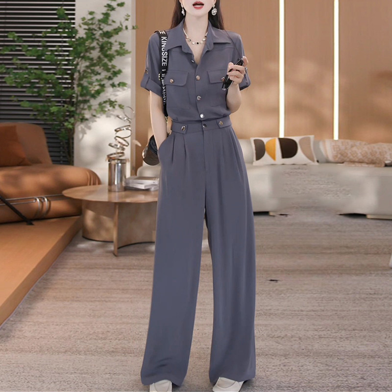 Professional wear, a complete set of temperament high-waisted jumpsuits for women, 2025 summer work shirts, waist slimming long pants