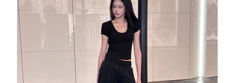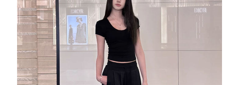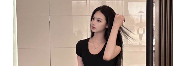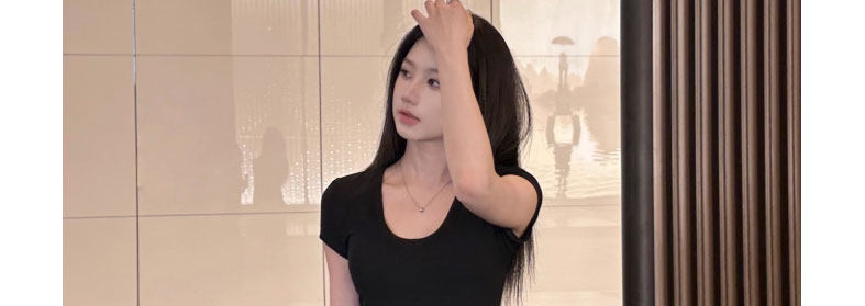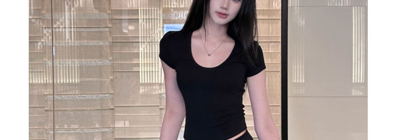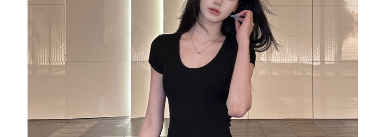 Pure Desire Style U-Neck Short-Sleeve T-Shirt for Women, New Summer Sexy Low-Cut Hot Girl High-Elastic Slim-Fit Basic Versatile Top