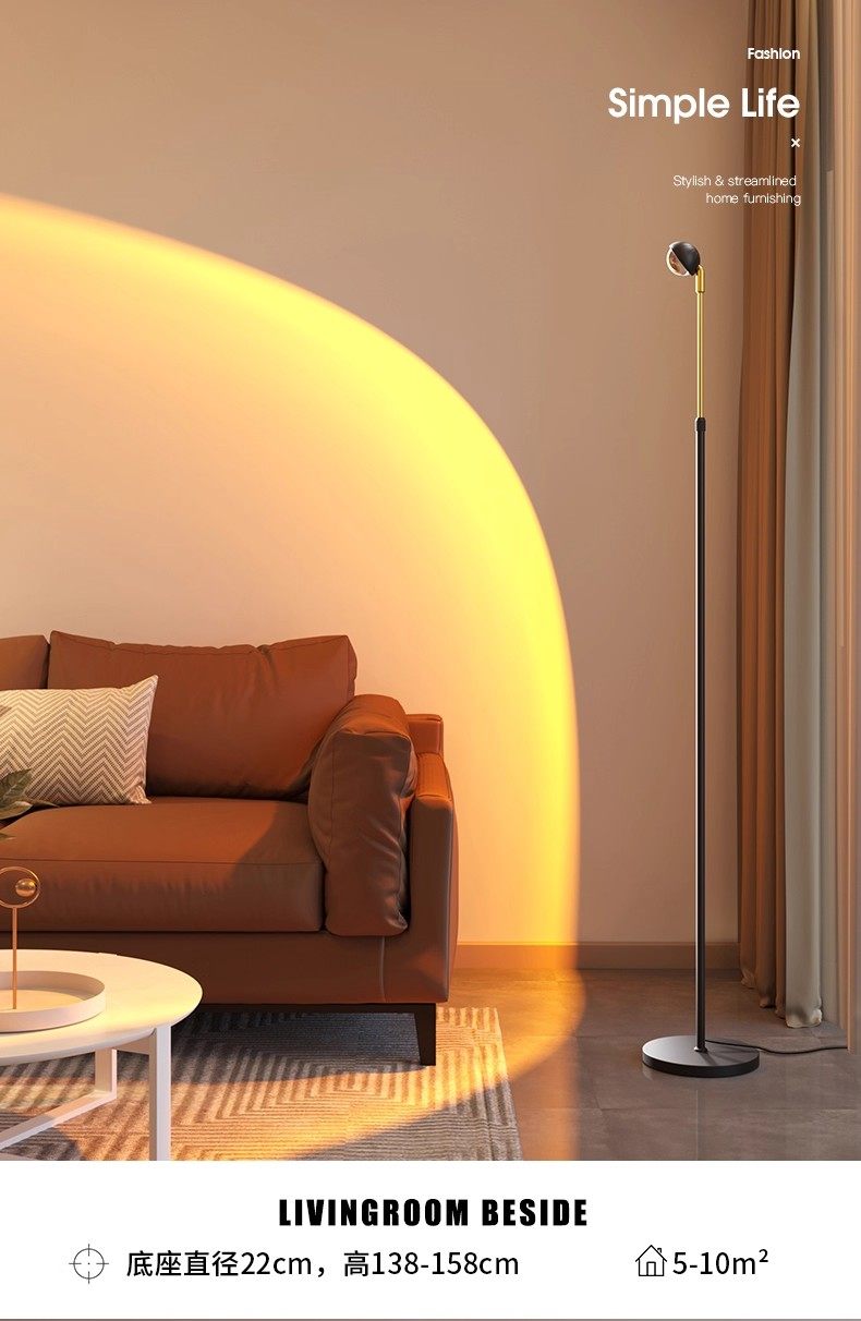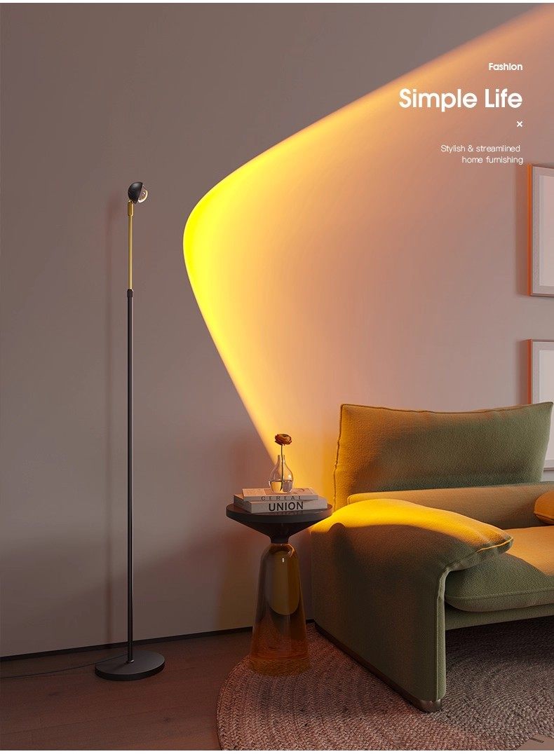Living Room Floor Lamp Next to the Sofa, High-End Floor Atmosphere Lamp, Minimalist Bedroom Corner, Trendy Sunset Lamp