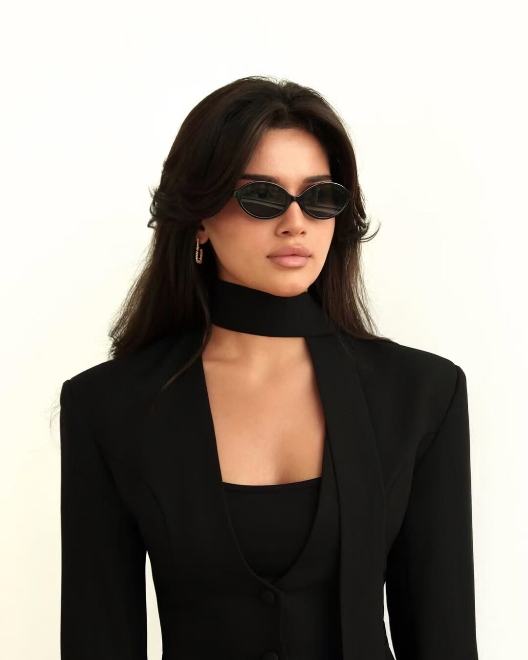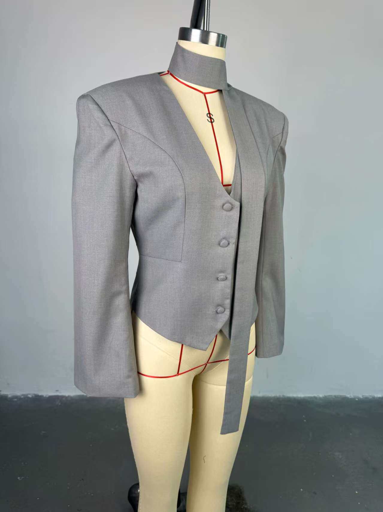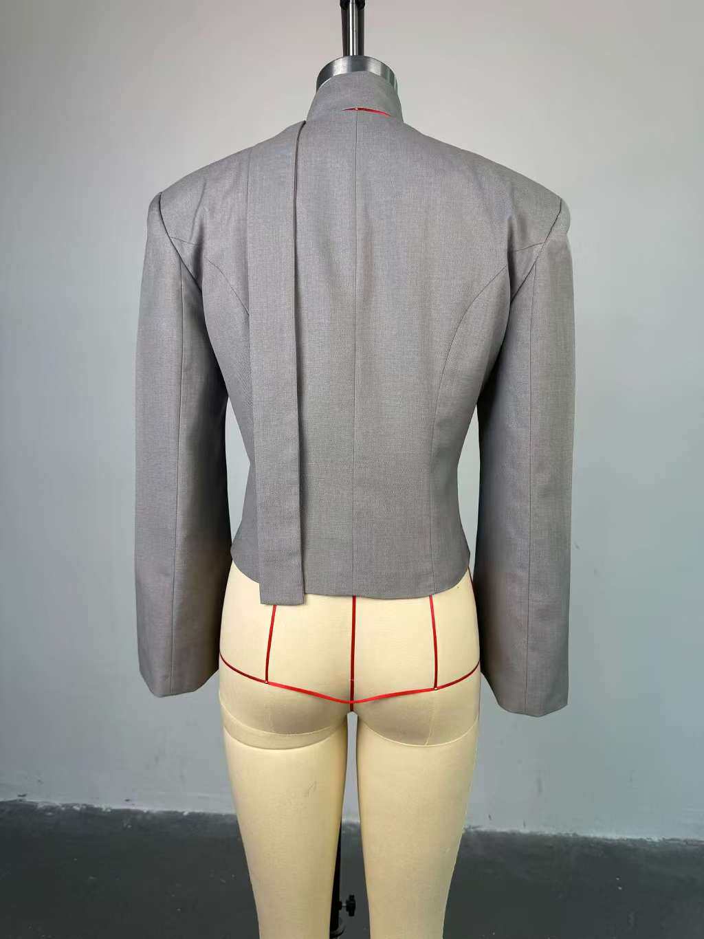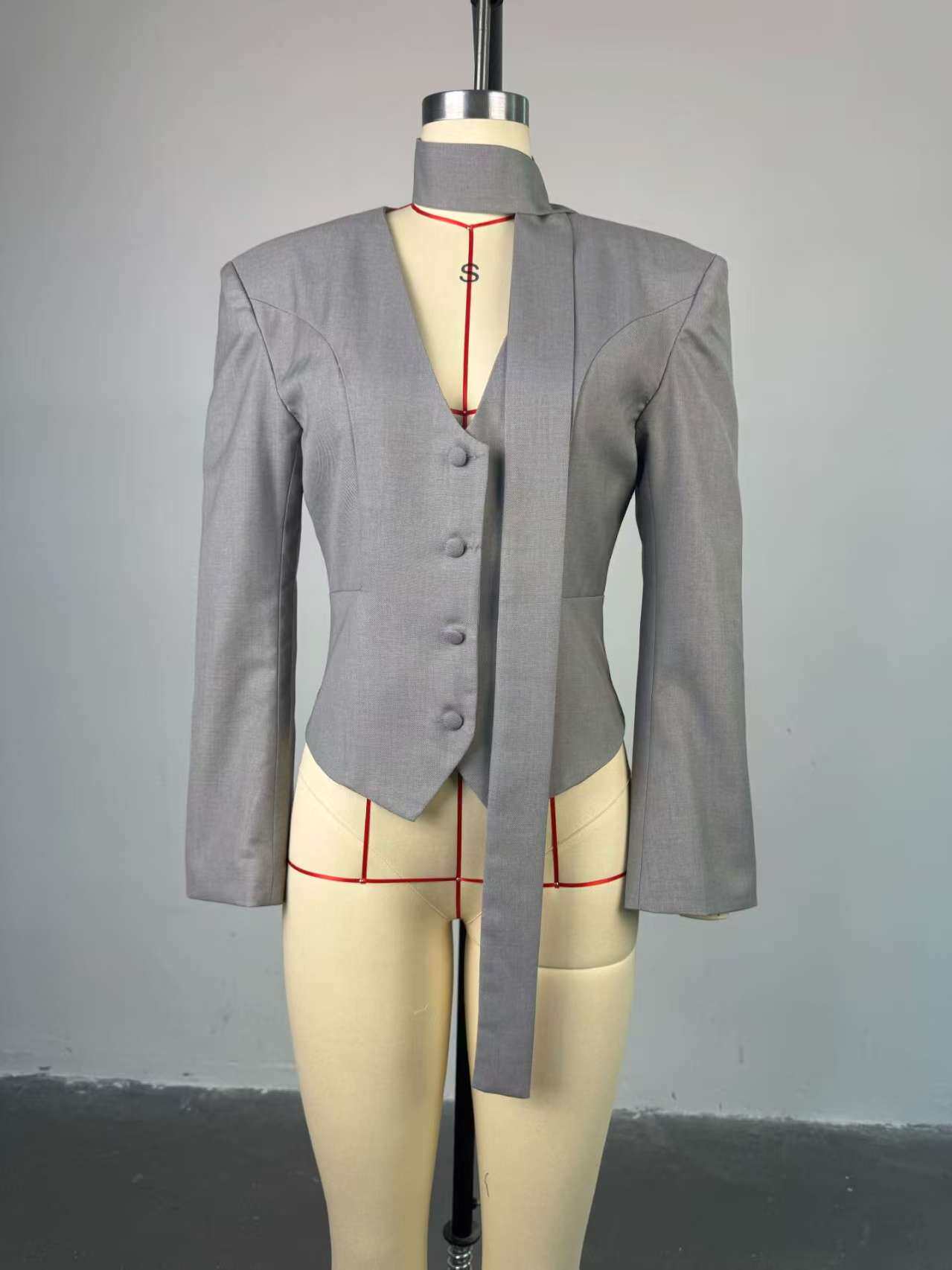 European and American Style Fashion Solid Color V-Neck Scarf-Decorated Long-Sleeve Casual Blazer Jacket