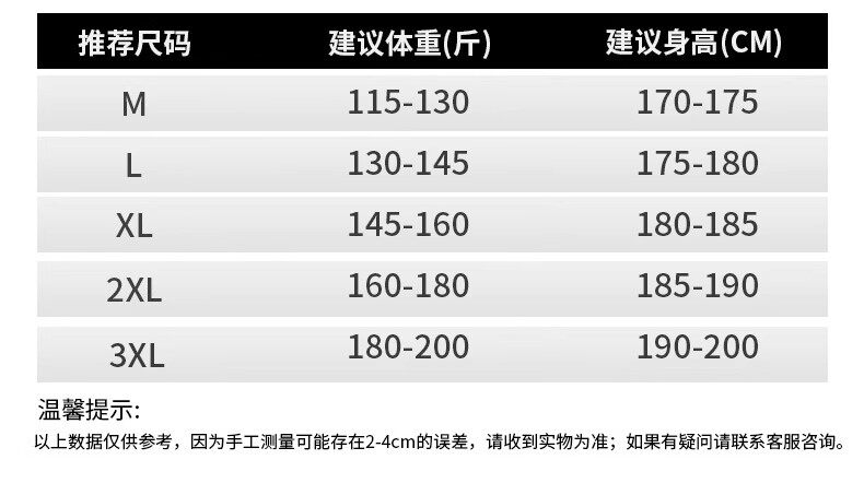 China (cm) 165 / 88-90 170 / 96-98 175 / 108-110 180 / 118-122 185 / 126-130