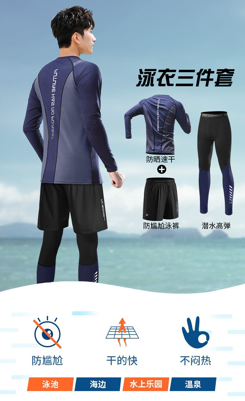 Men's swimsuit, sun protection swimming and diving suit, adult long-sleeved swimming trunks, full set of jellyfish pants, rafting equipment and clothes