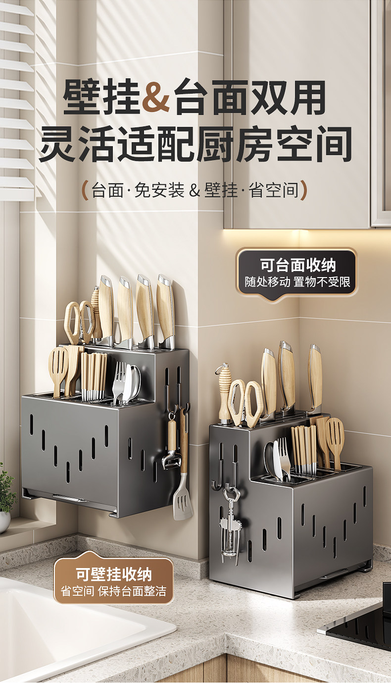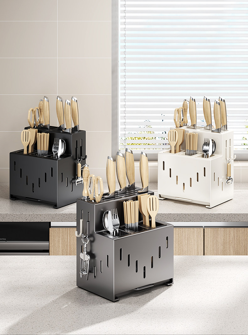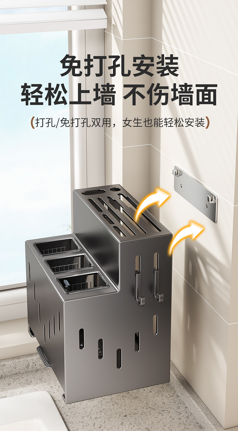 2025 New Kitchen Knife Rack Storage Rack No Punch Multifunctional Vegetable Knife Chopstick Tube Chopstick Cage Integrated Storage Box