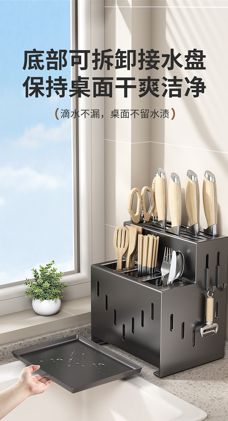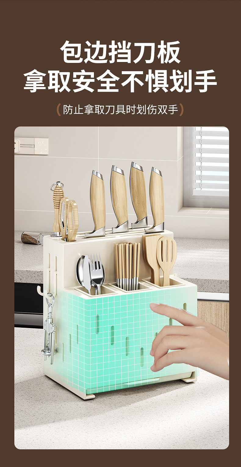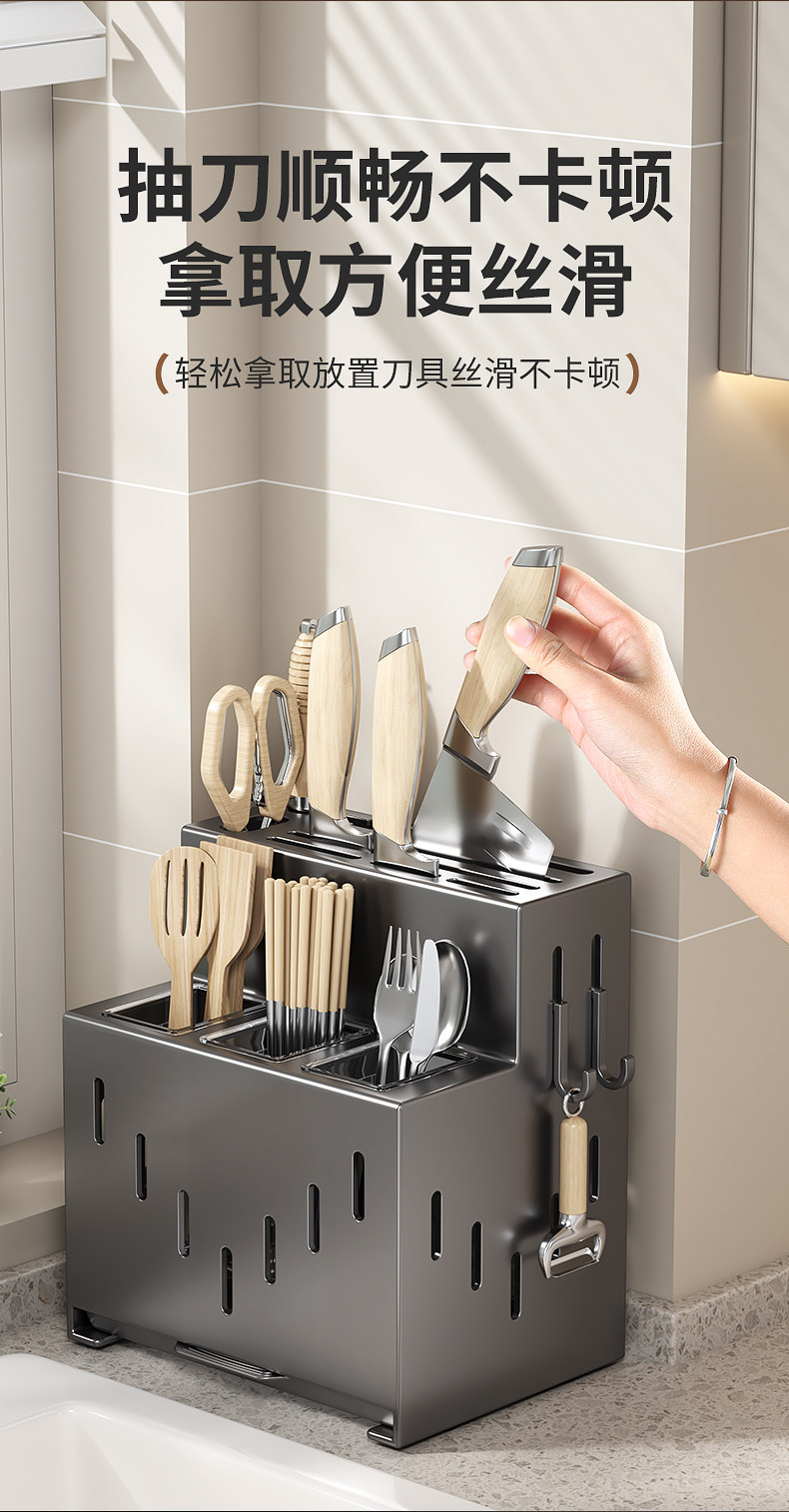 2025 New Kitchen Knife Rack Storage Rack No Punch Multifunctional Vegetable Knife Chopstick Tube Chopstick Cage Integrated Storage Box