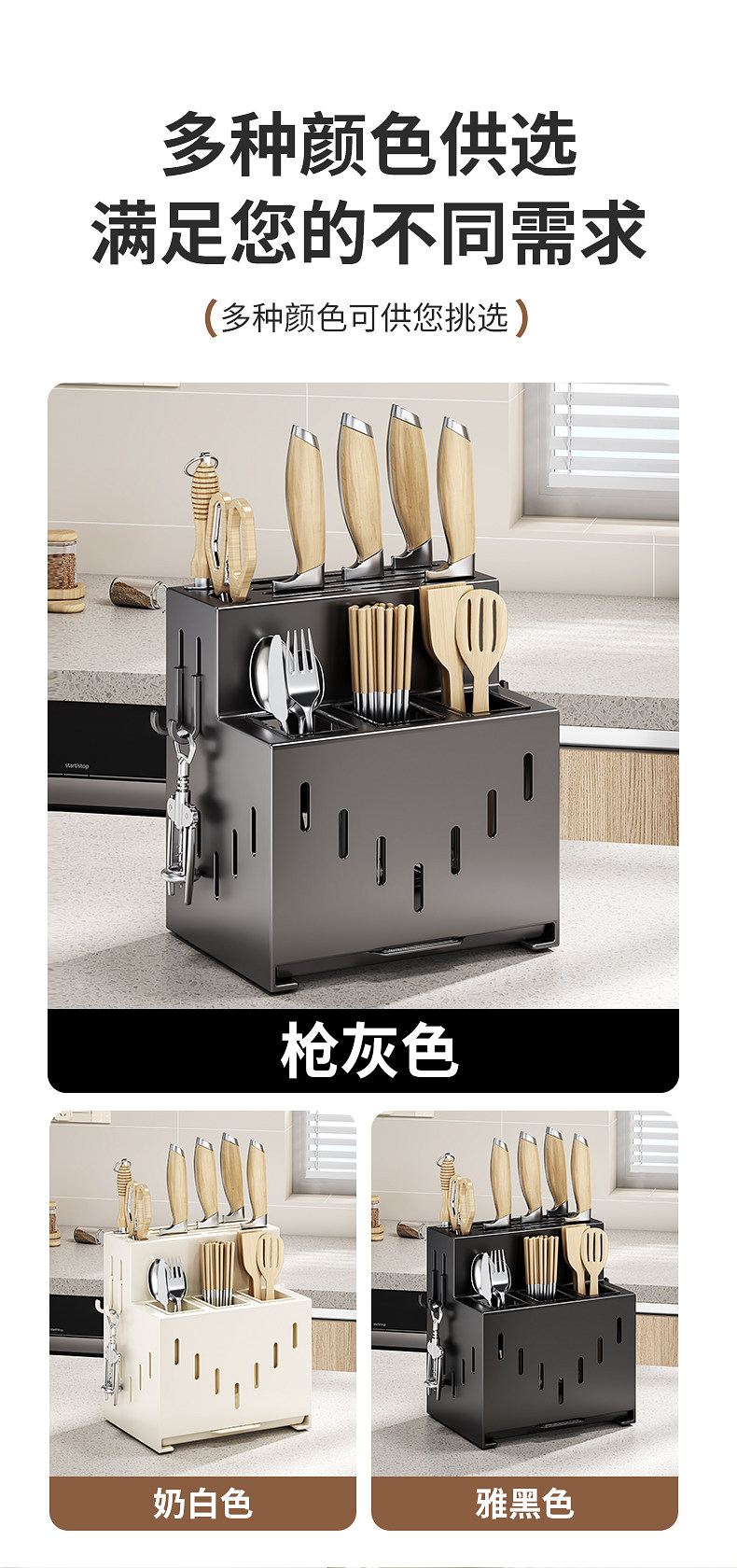 Sort by color Gun Ash Knife Holder Wall-mounted/Countertop Dual-Use,Milk white knife holder wall-mounted/countertop dual-purpose,Black knife holder wall-mounted/countertop dual-purpose