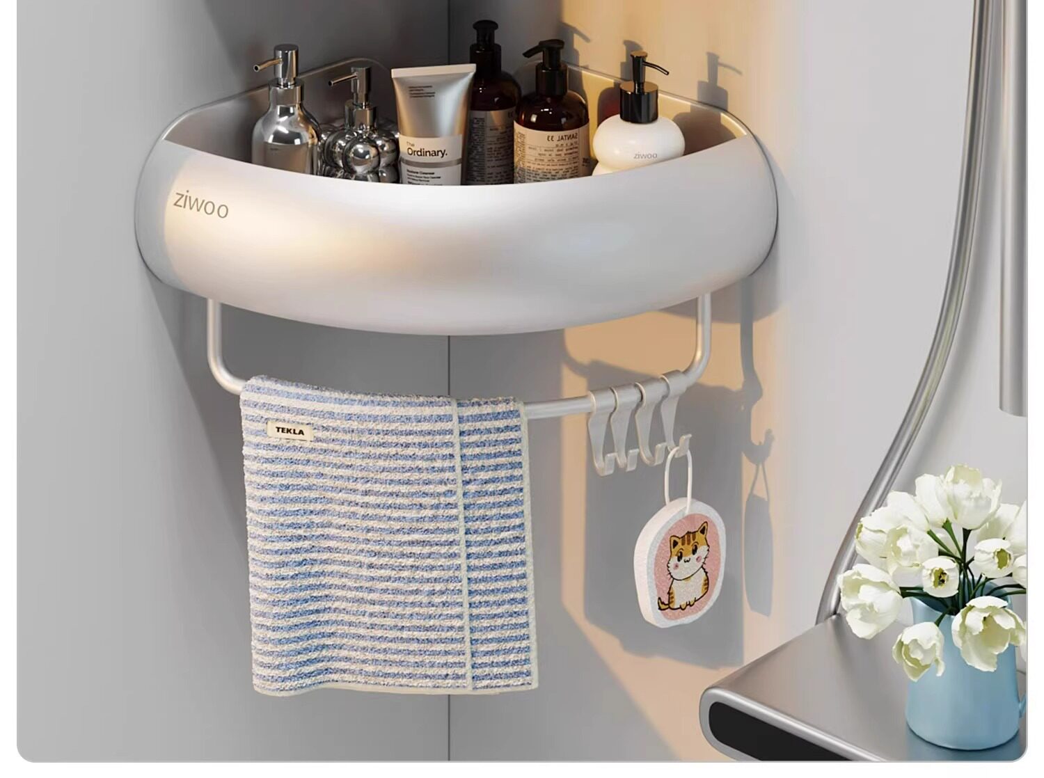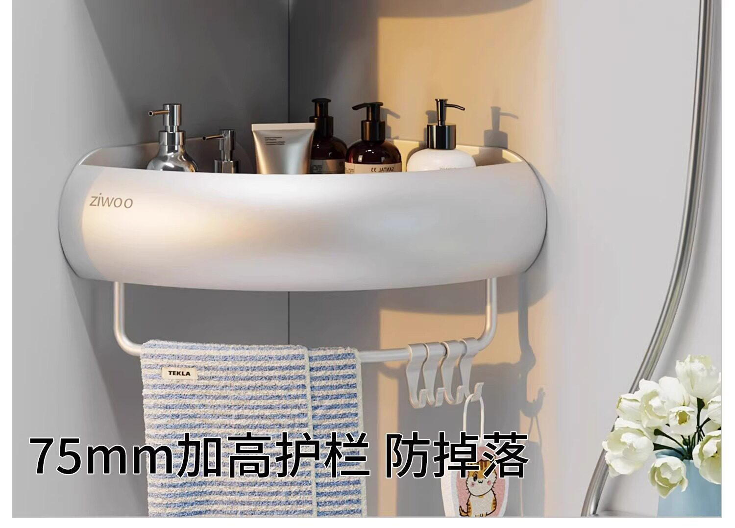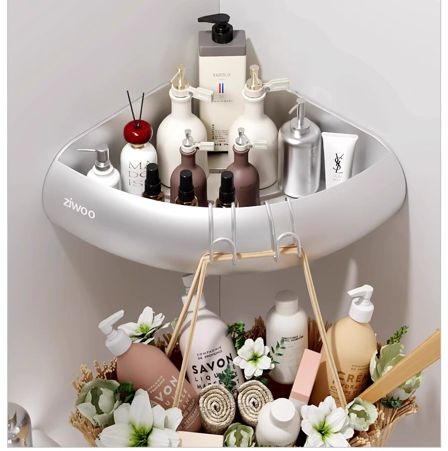 French Ziwoo Bathroom Shelf, No-Drill Bathroom Triangular Basket, Washbasin Wall Storage Corner Shelf