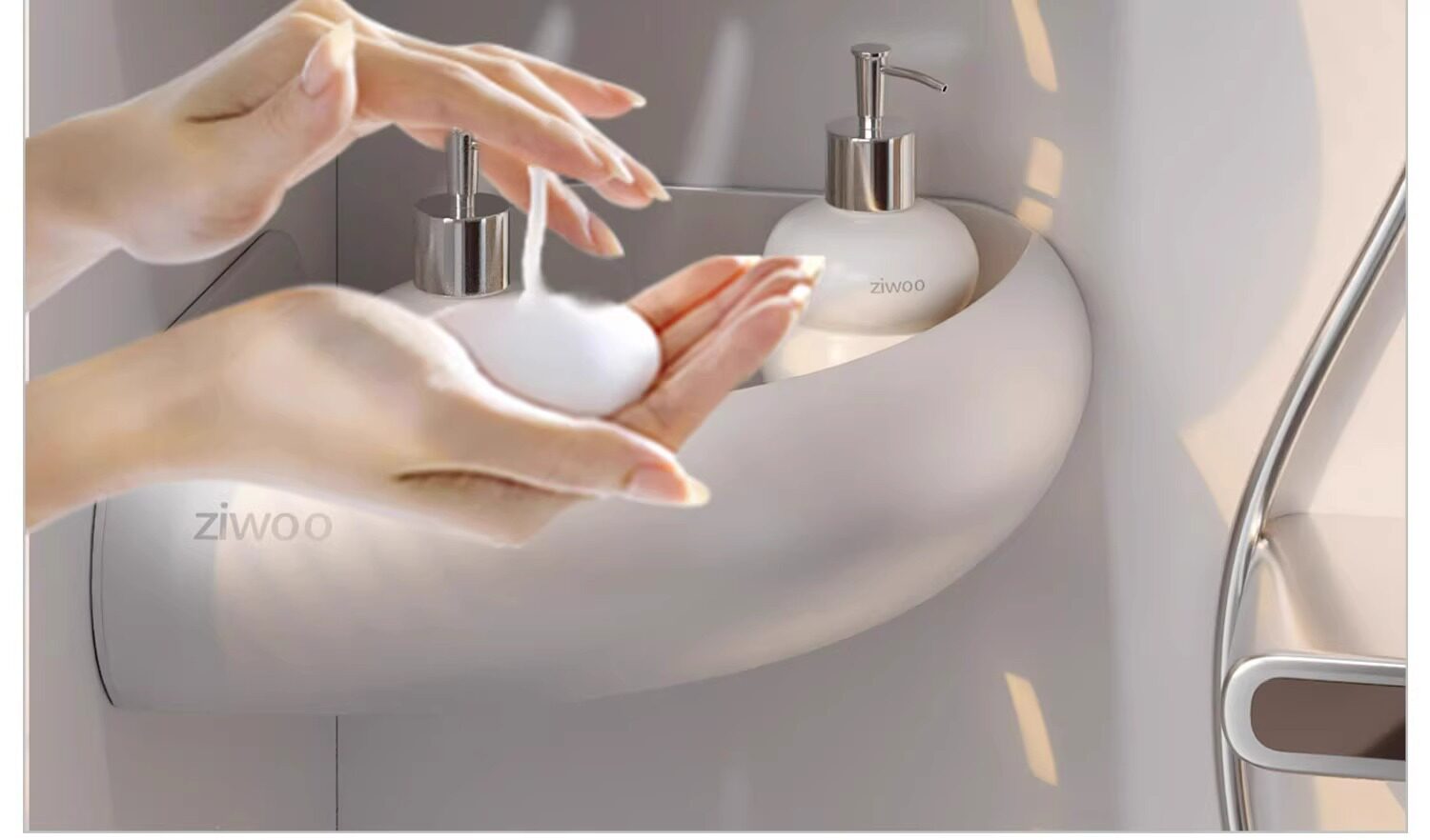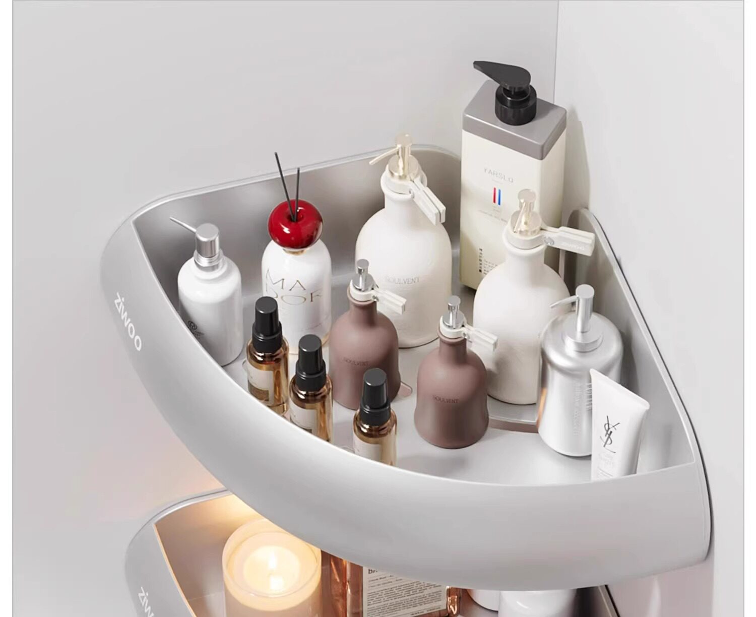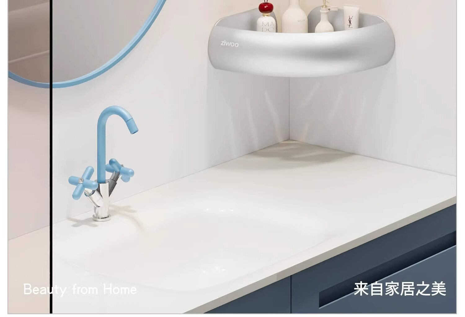French Ziwoo Bathroom Shelf, No-Drill Bathroom Triangular Basket, Washbasin Wall Storage Corner Shelf