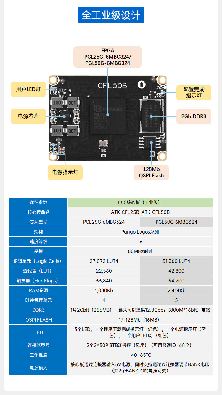 Zhengdian Atom Pgl25G/50G Fpga Development Board Ziguang Tongchuang Logos Domestically Produced Industrial-Grade Mipi