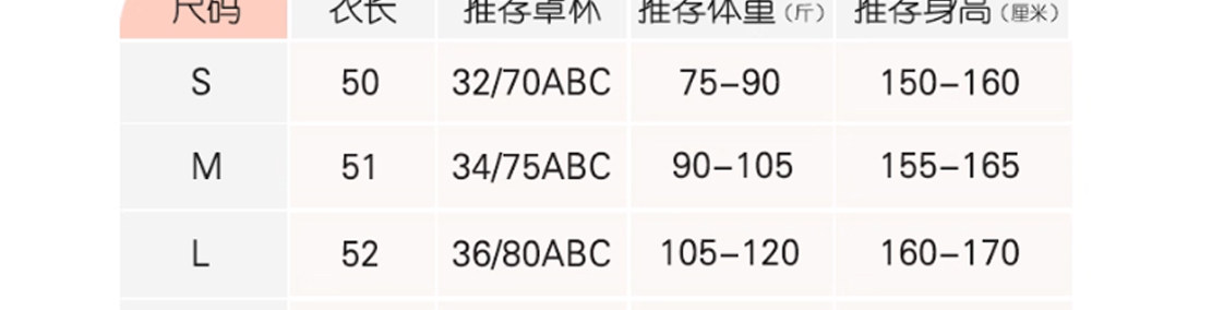China (cm) 160-165/84-86 165-170 / 88-90 167-172 / 92-96 168-173 / 98-102 170-176 / 106-110