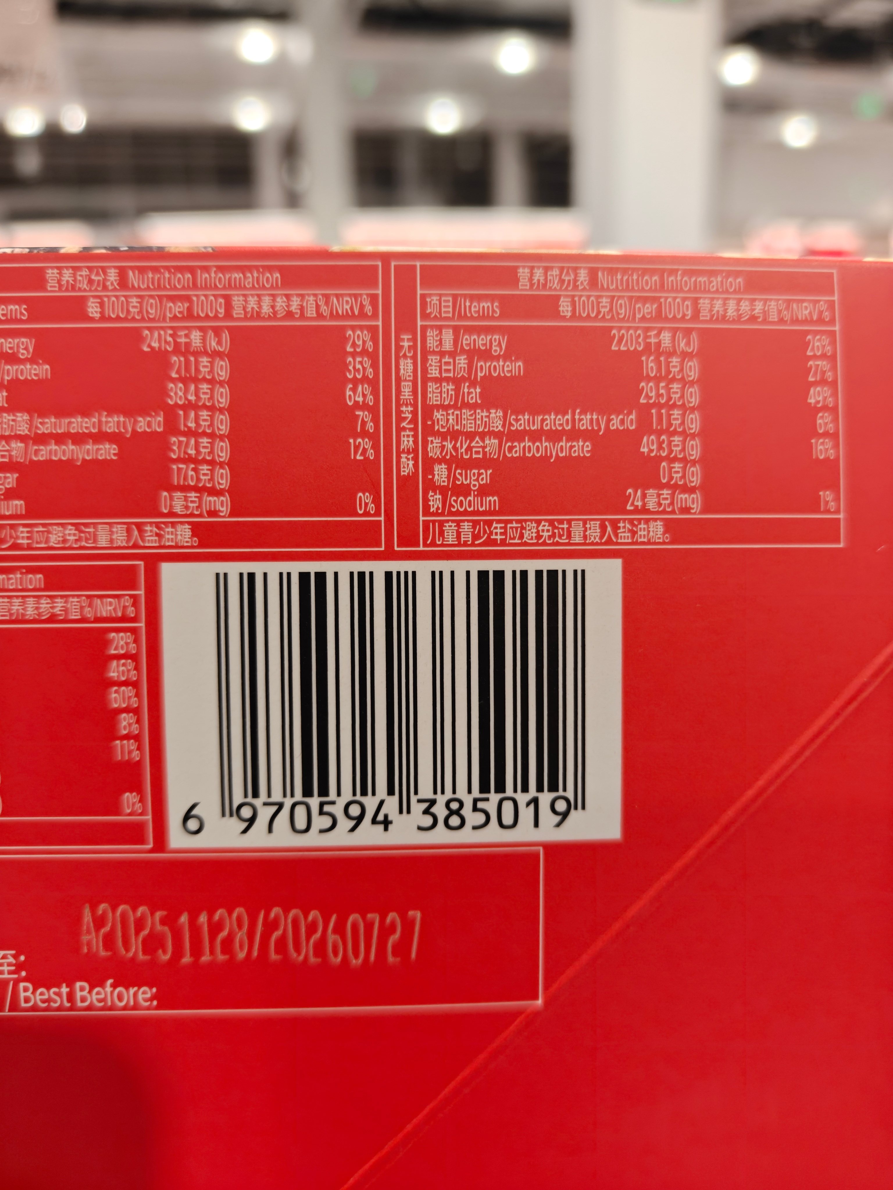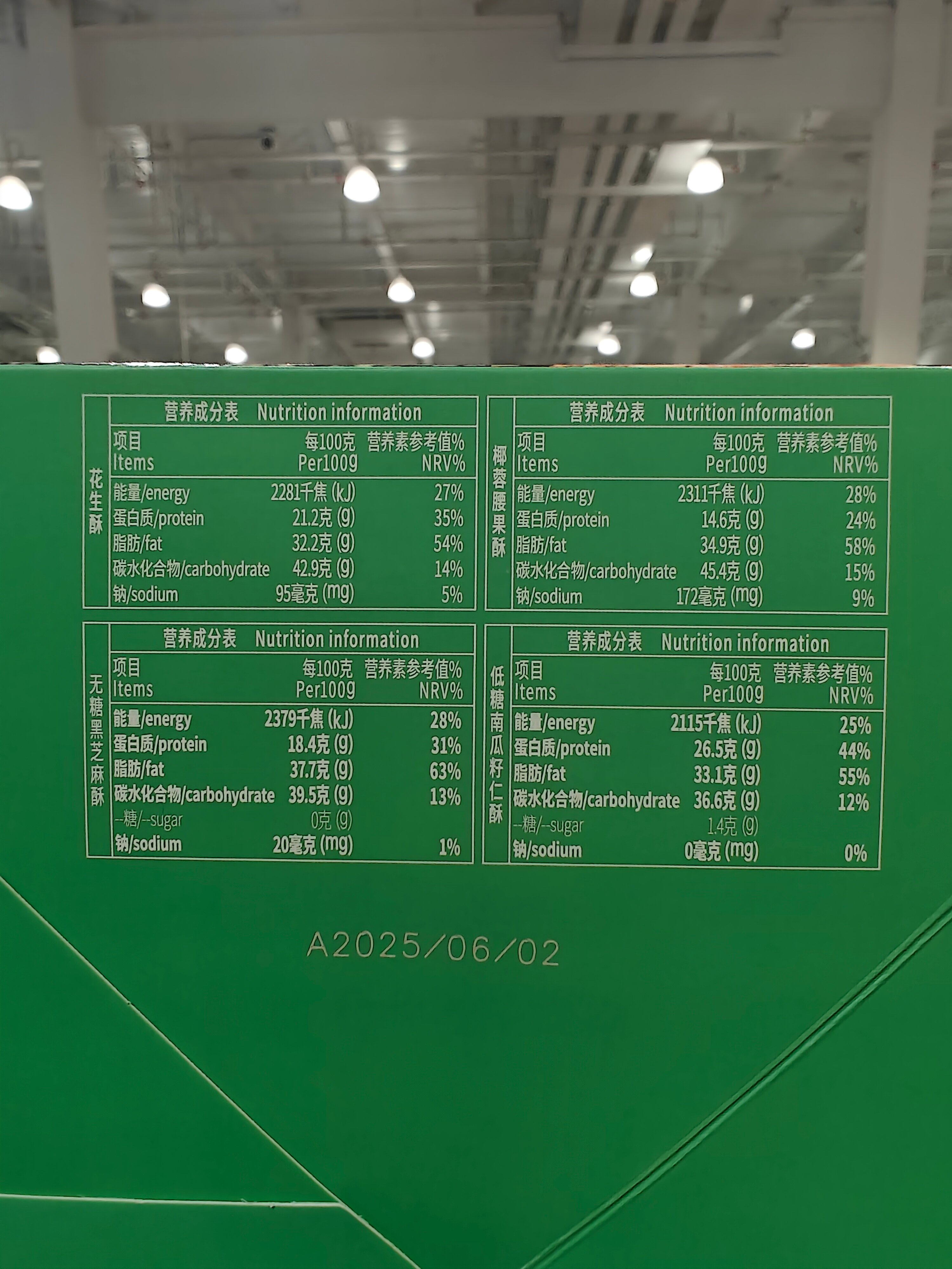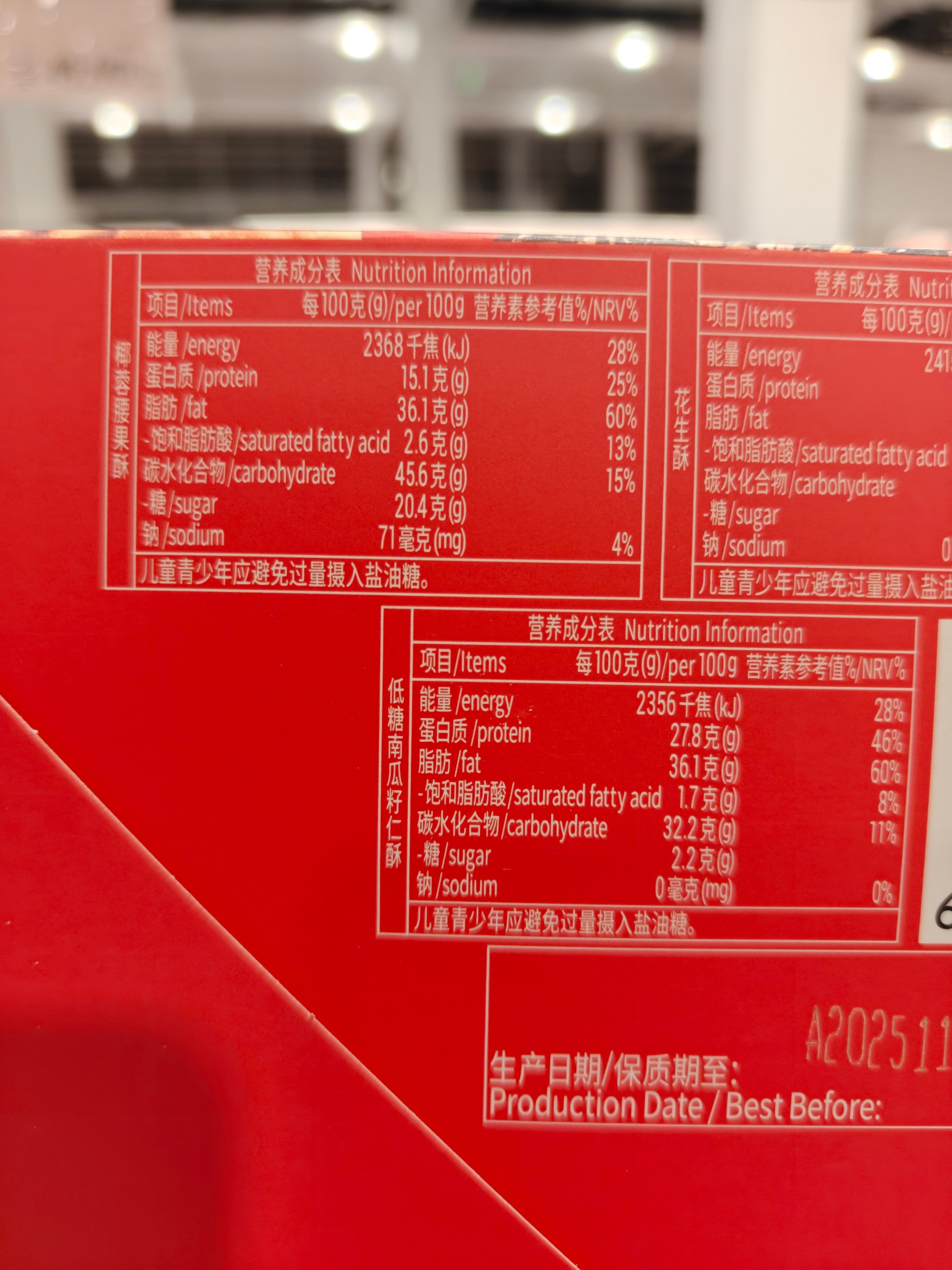 Food flavor Assorted nut crisps 720g (green box produced in October),Assorted nut crisps 720g (red box produced in November)