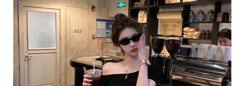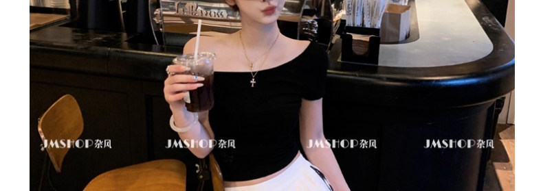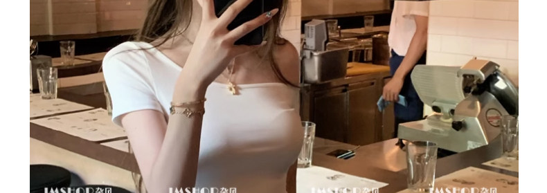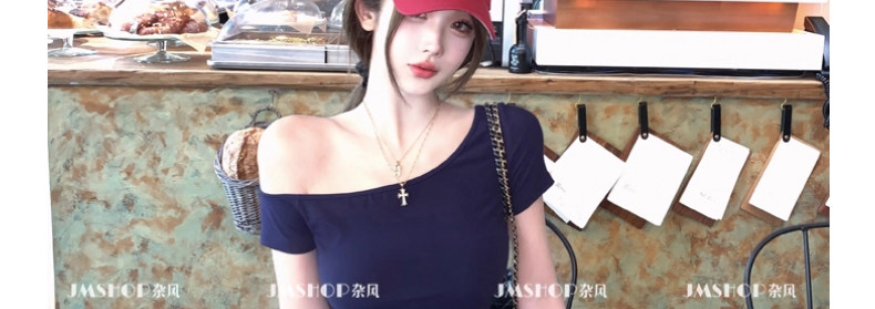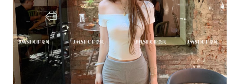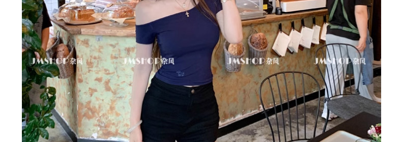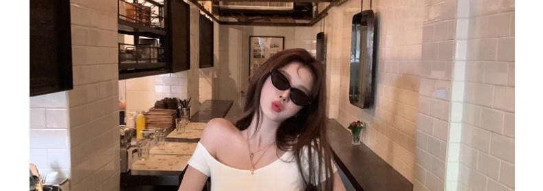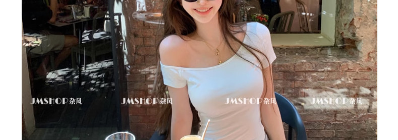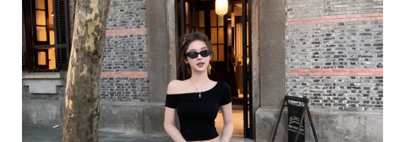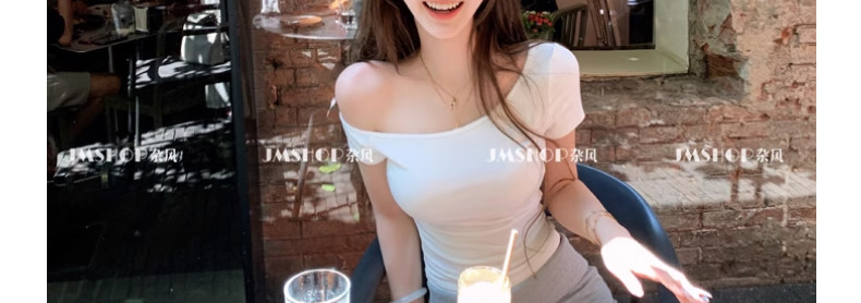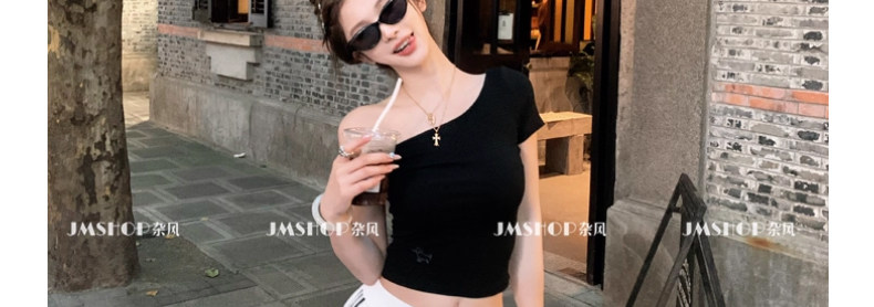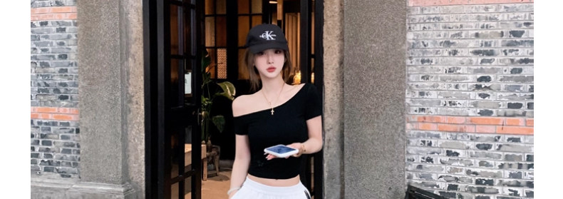 White Pure and Sexy Hot Girl Style One-Shoulder Short-Sleeved T-Shirt for Women, Summer Slim-Fit Sexy Top with Chest Pads, Short Asymmetrical Shoulder Top