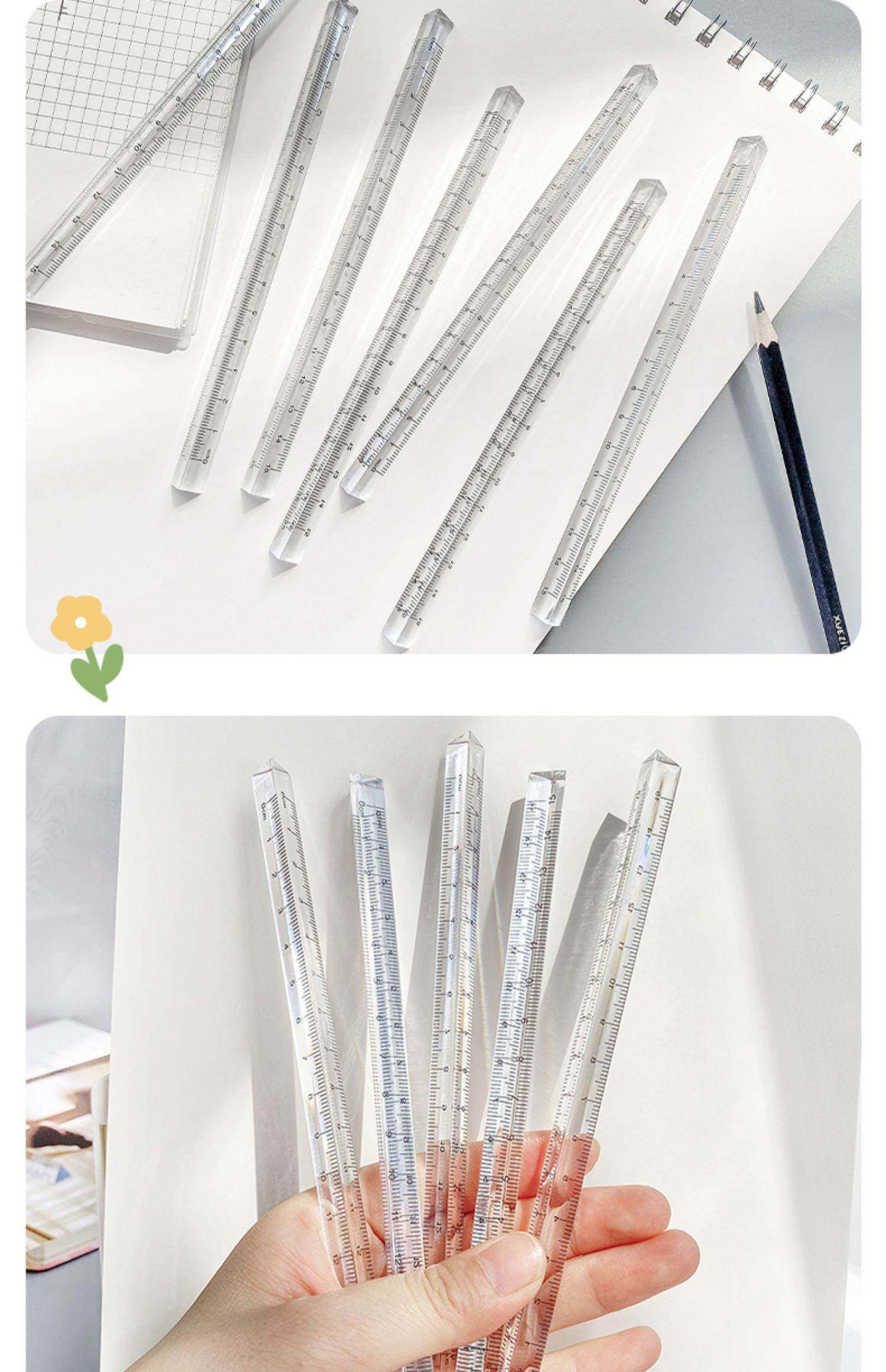 Three-Dimensional Triangular Ruler, Four-Corner Straight Ruler, Transparent Ruler, 15cm Plastic Student Triangle Ruler, Four-Sided Square Ruler, Surveying Ruler