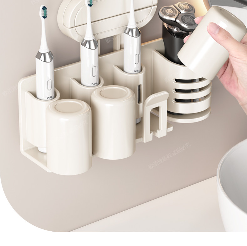 Milky White Suction Cup Toothbrush Holder Bathroom Mouthwash Cup Rack Wall-Mounted Tooth Cup Toothbrush Holder Electric Toothbrush Stand