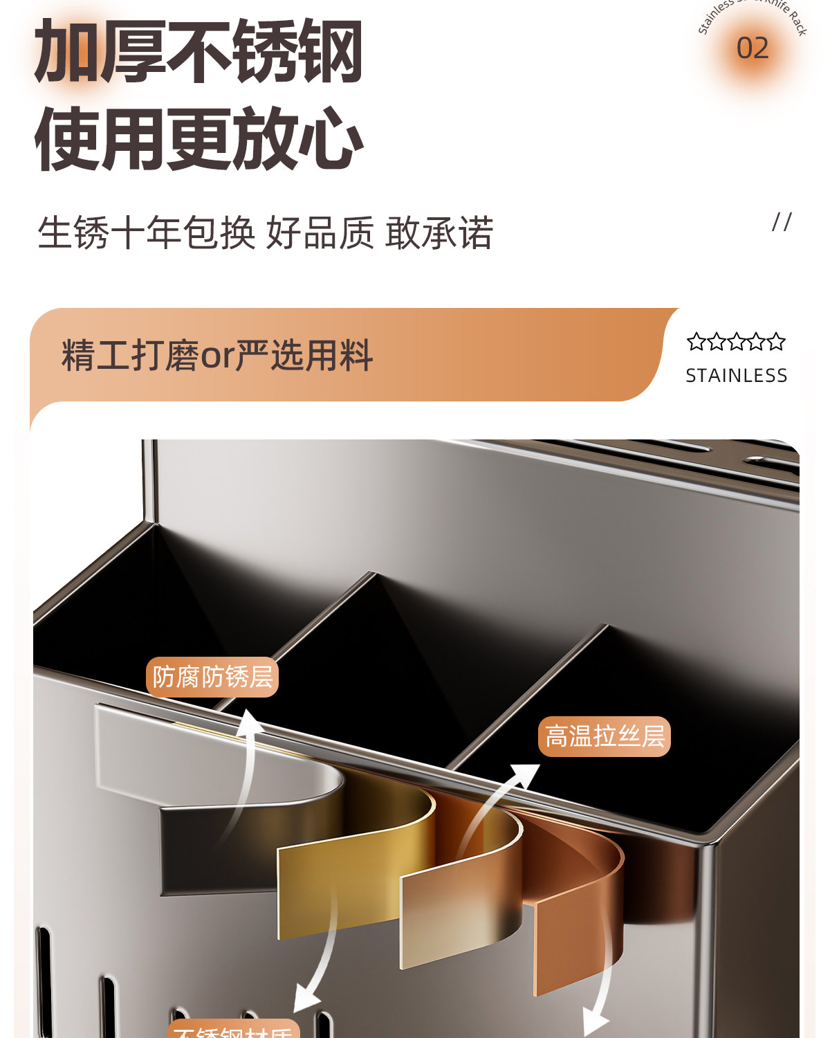 Stainless Steel Kitchen Knife Rack Storage Rack 2026 New Model Multifunctional Knife and Chopstick Holder Integrated Storage Box
