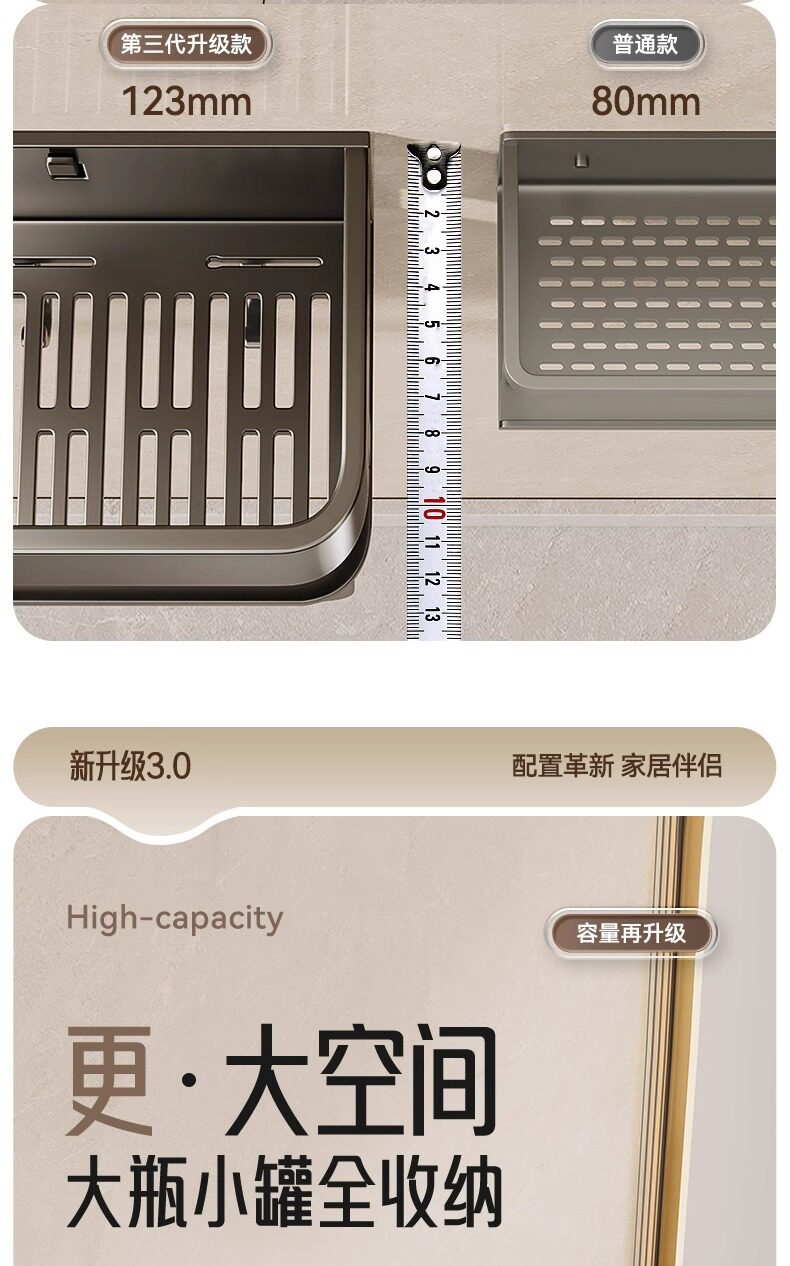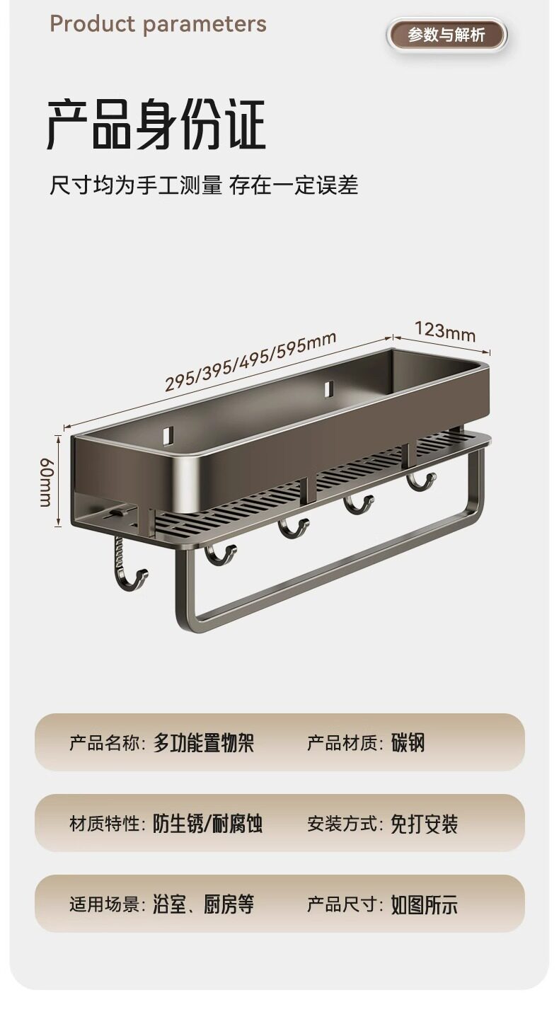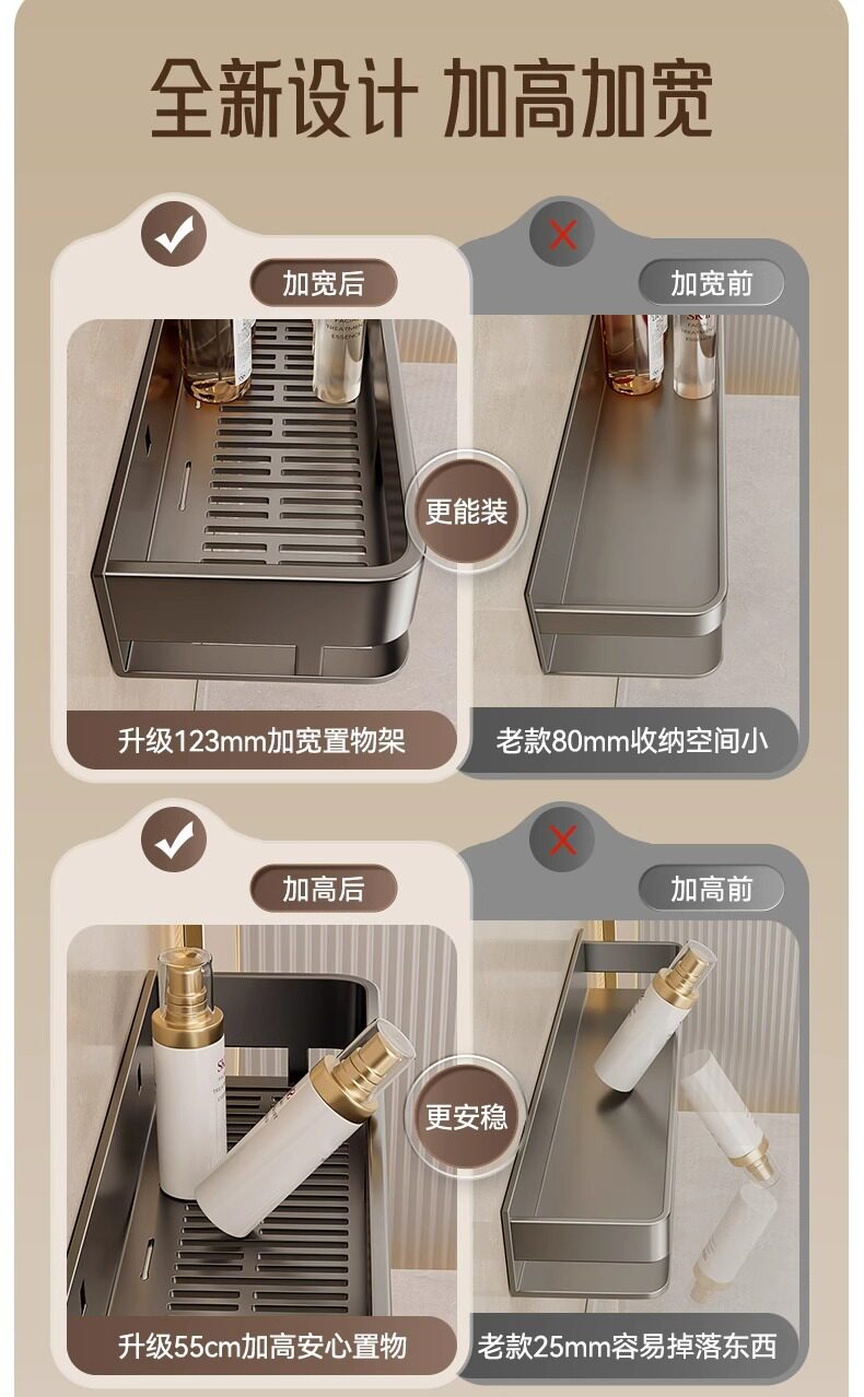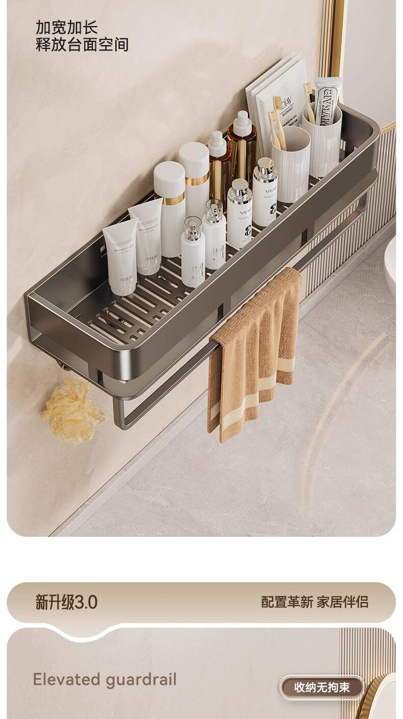 French Ziwoo Light Luxury No-Drill Bathroom Shelf Wall-Mounted Towel Rack Bathroom Sink Storage Rack