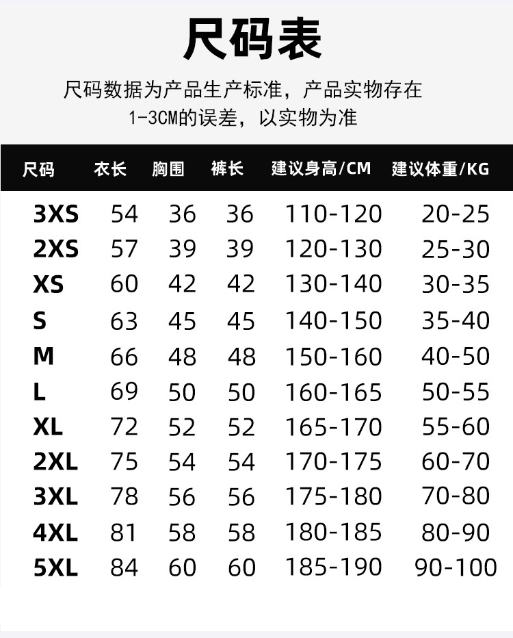 Size S(Height 140-150cm),M (Height 150-160cm),L(Height 160-165cm),XL (Height 165-170cm),2XL (Height 170-175cm),3XL (Height 175-180cm),4XL (Height 180-185cm),5XL (Height 185-190cm)