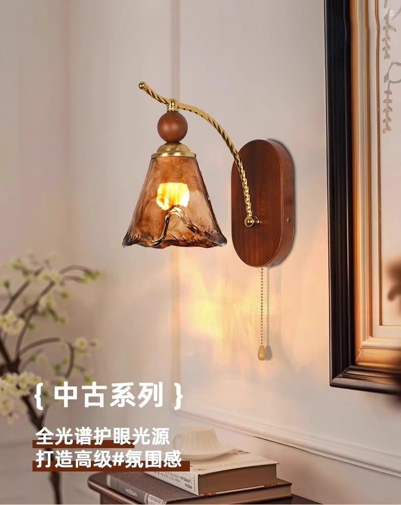 American-Style Retro Wall Lamp for Bedroom 2025 New Model Bedside Lamp Wall Lamp French-Style Living Room Light Luxury High-End Corridor Lamp