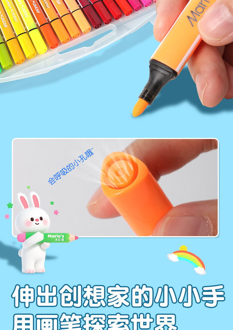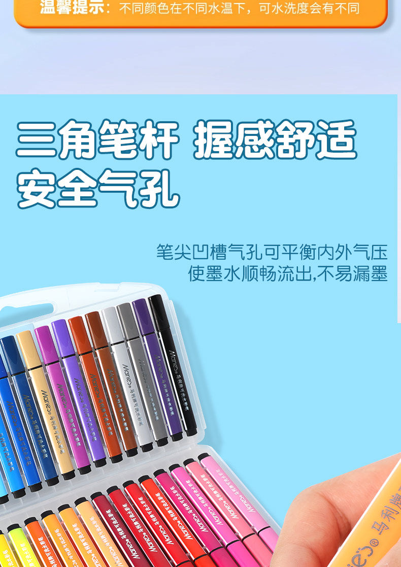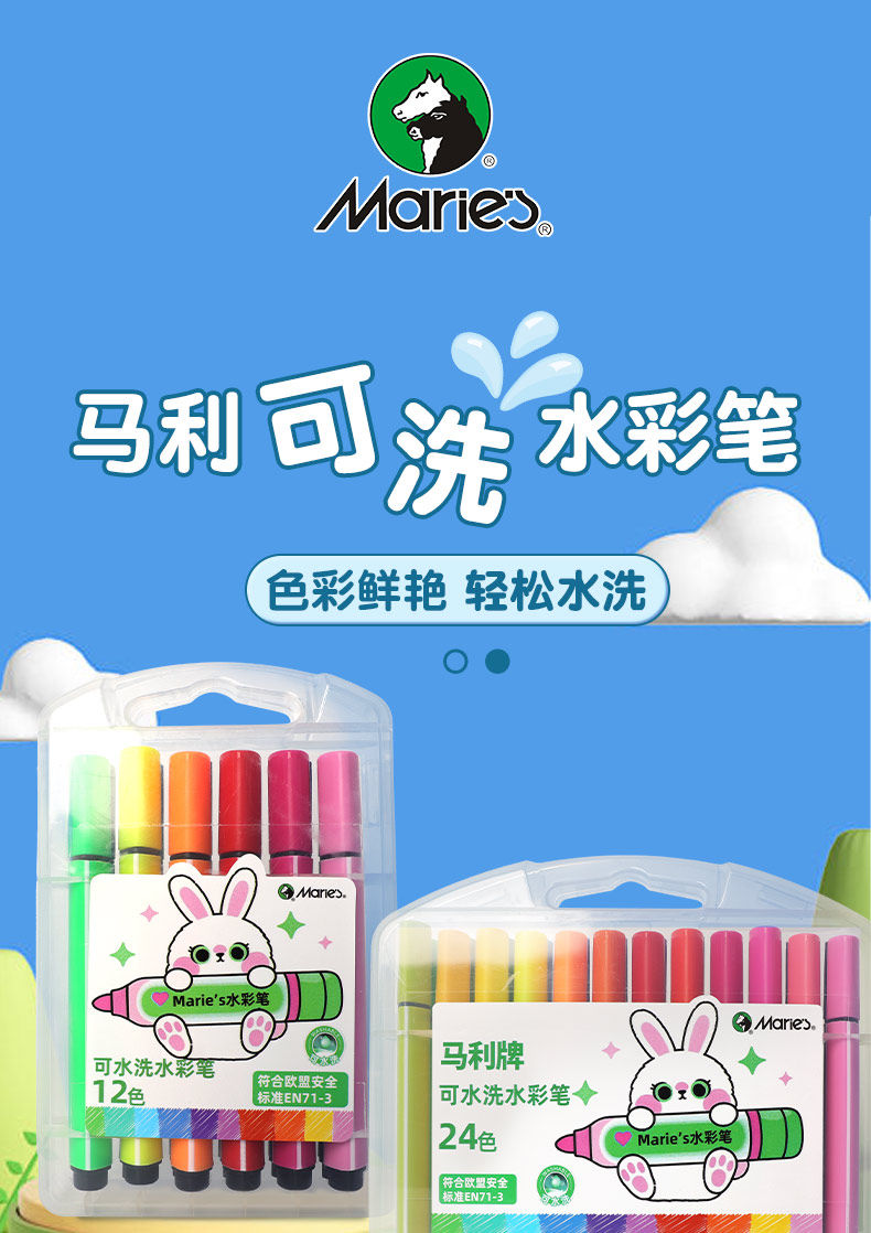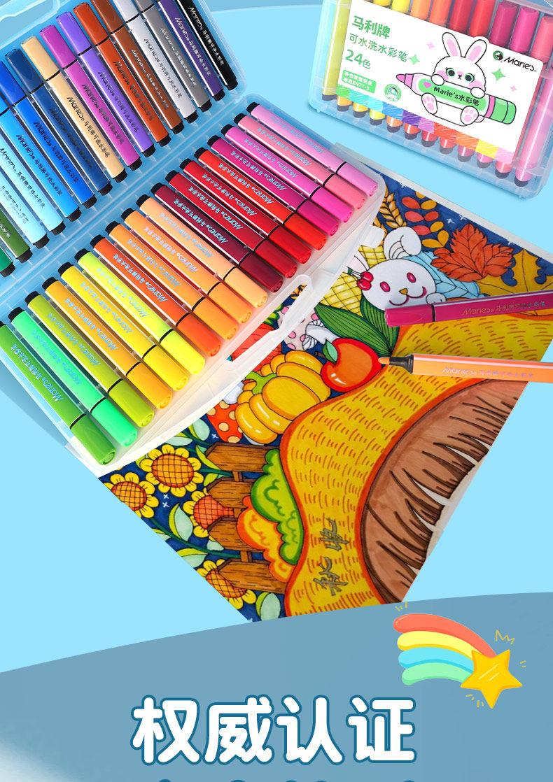 Marley Brand Washable Watercolor Pens 12/24/36 Colors Art Painting Set Tools for Elementary School Students, Kindergarten Drawing, Food-Grade, Safe and Non-Toxic for Children, Large Cone Tip Painting Colors