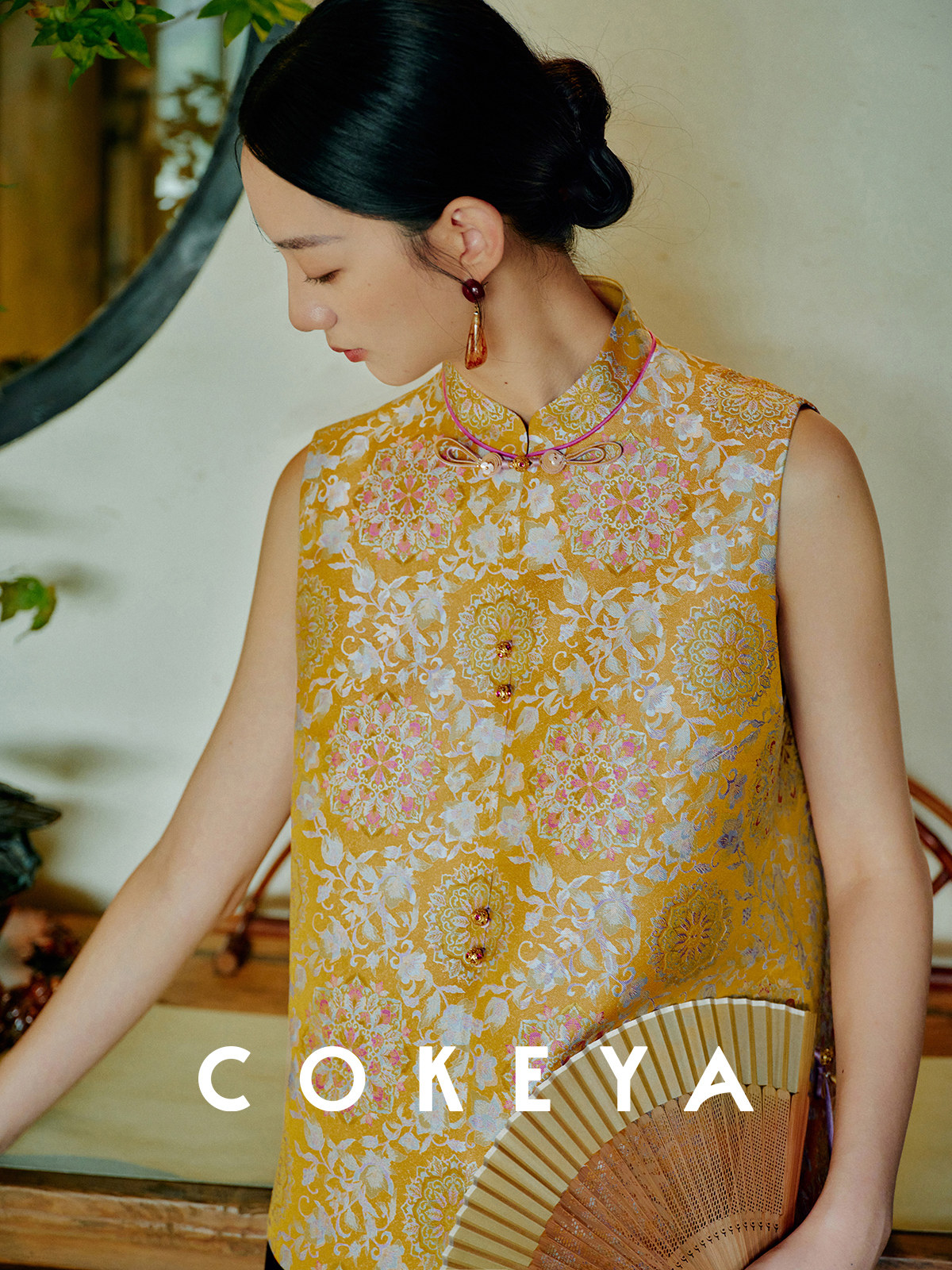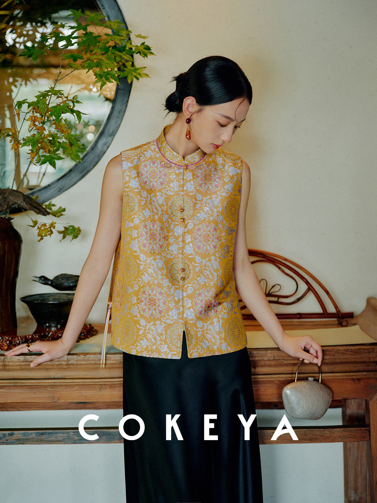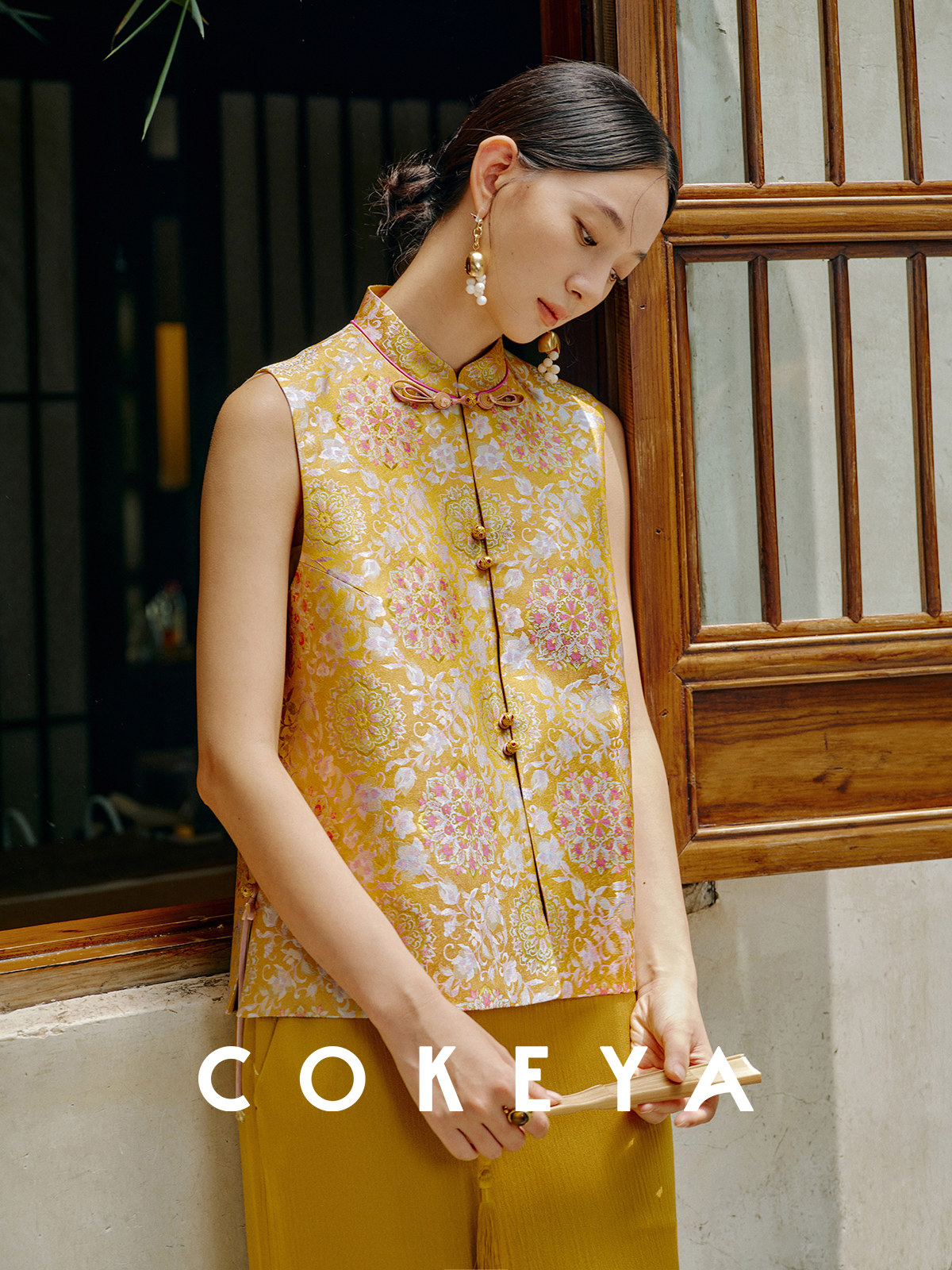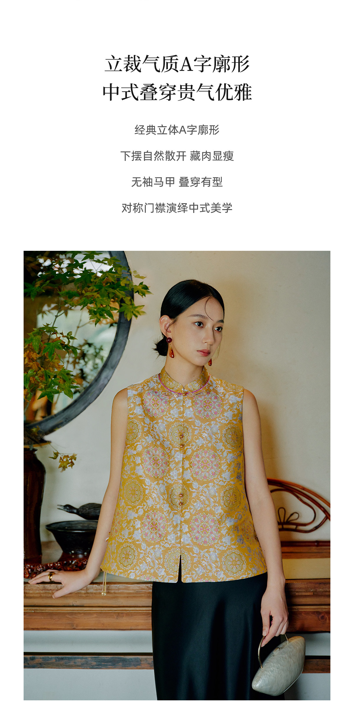 Cokeya/Oriental Beauty~Silk Song Brocade New Chinese Style Stand Collar Loose Sleeveless Vest for Women Summer