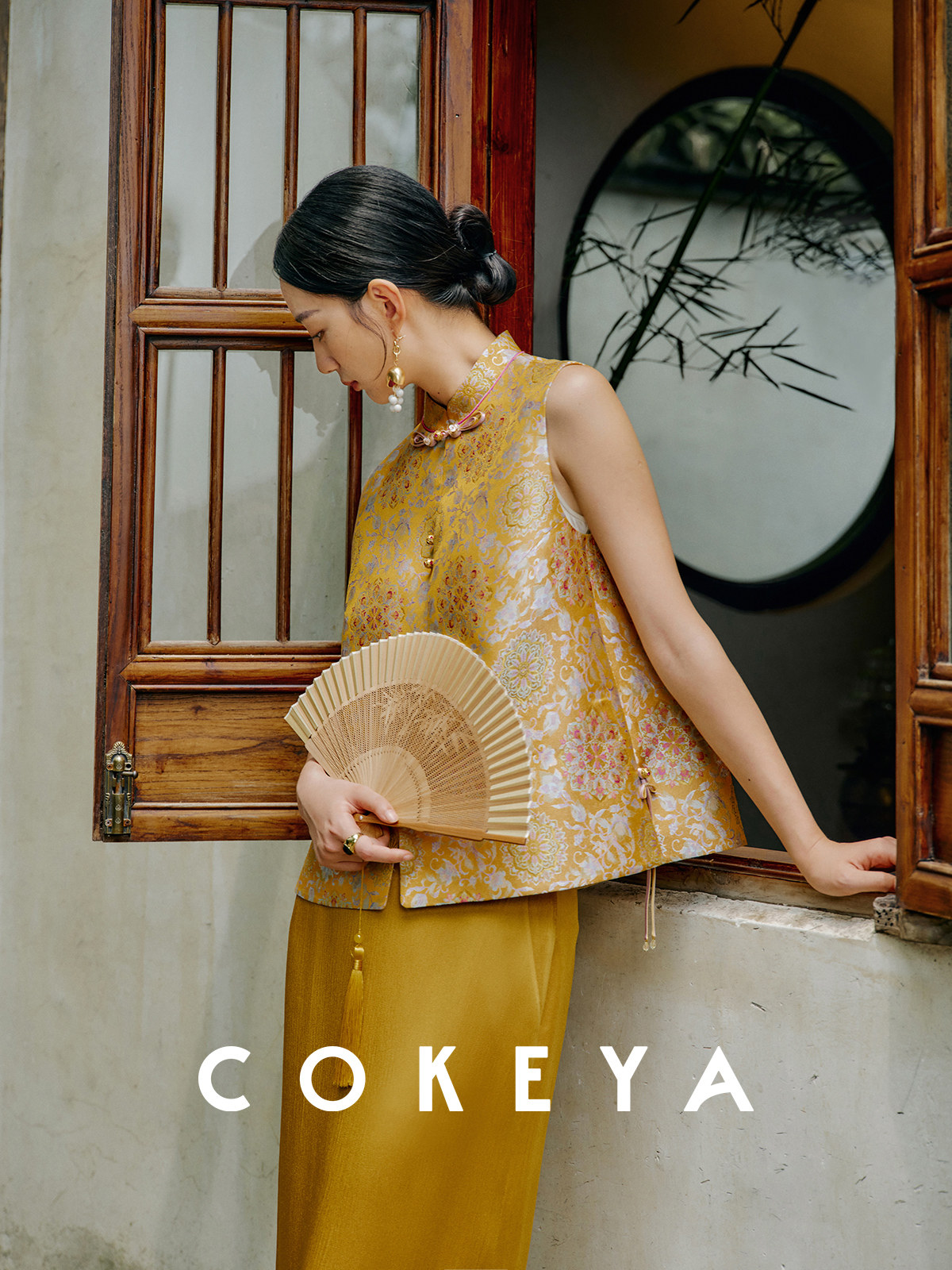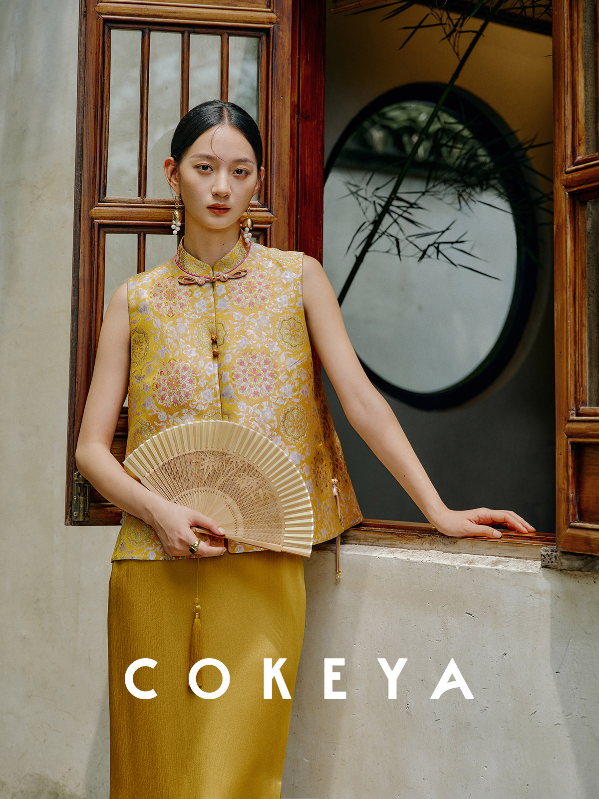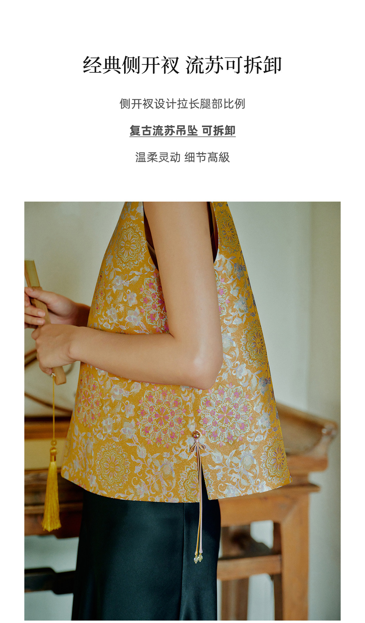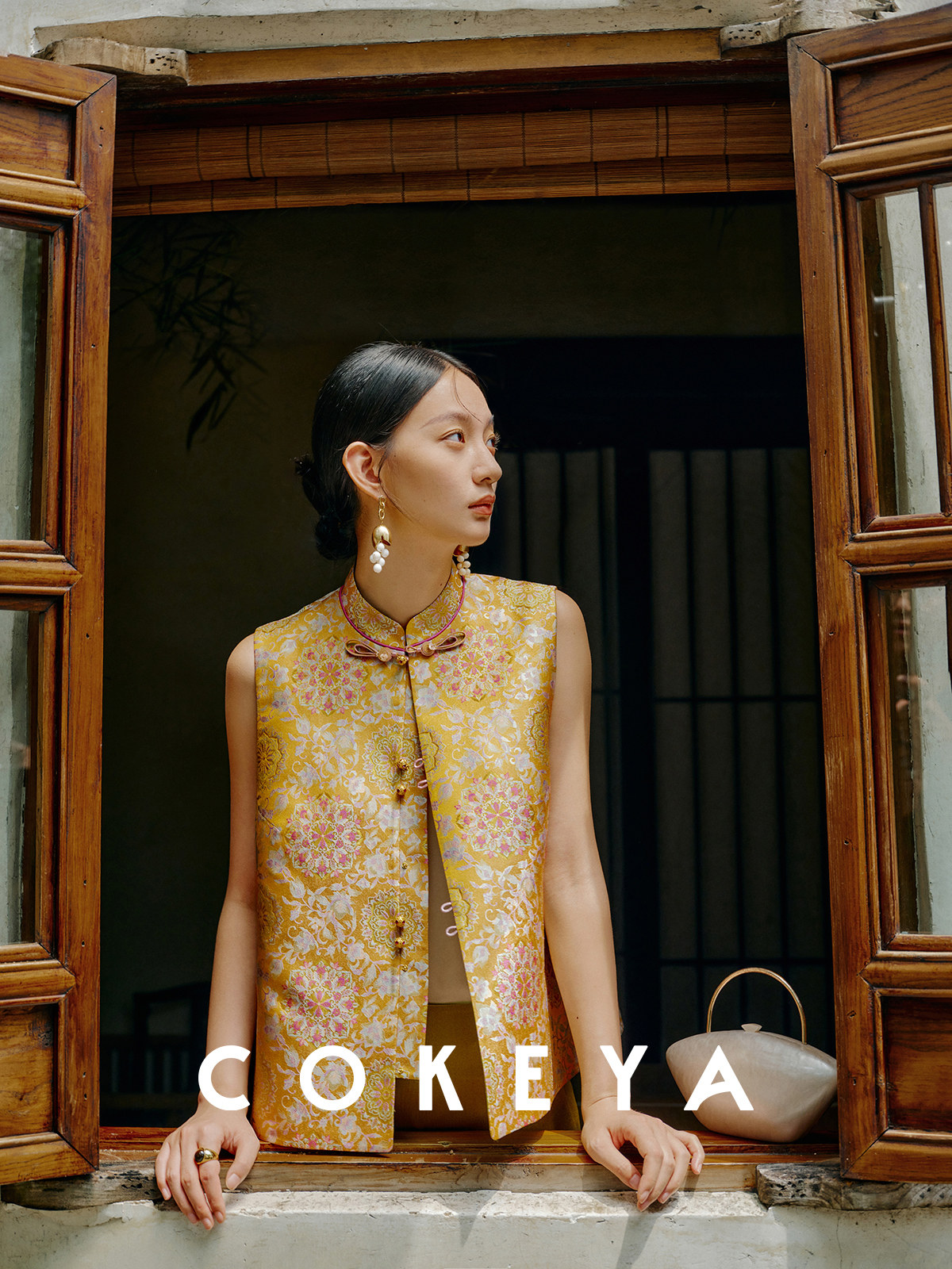 Cokeya/Oriental Beauty~Silk Song Brocade New Chinese Style Stand Collar Loose Sleeveless Vest for Women Summer