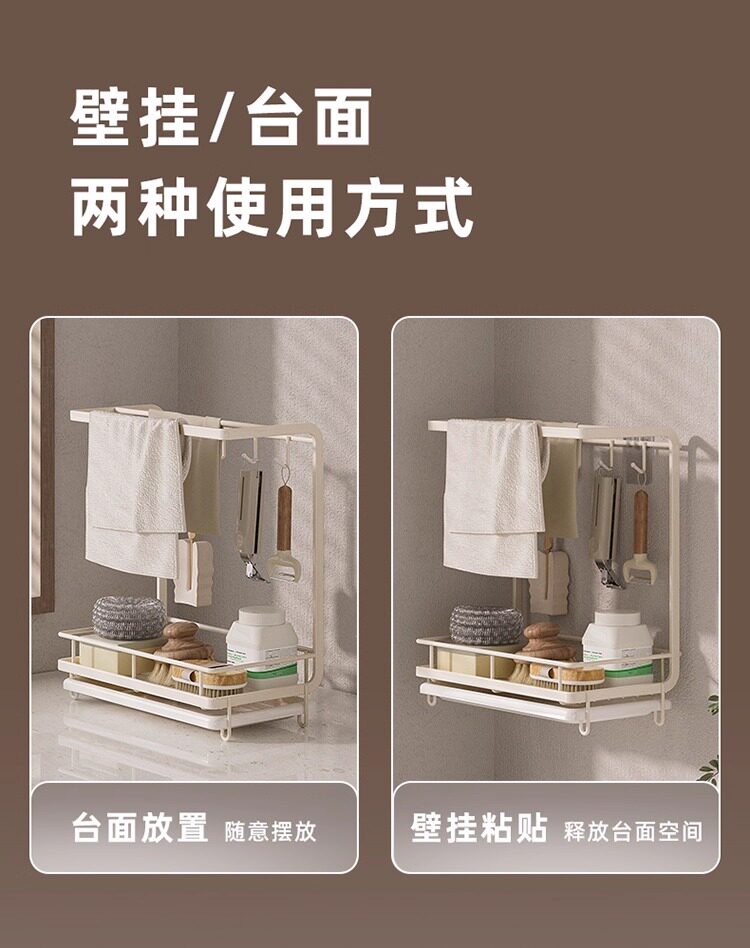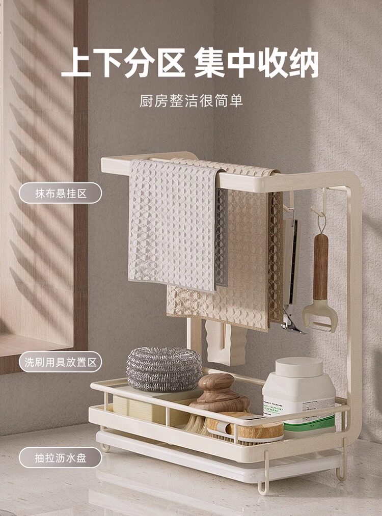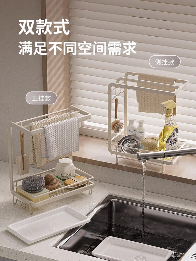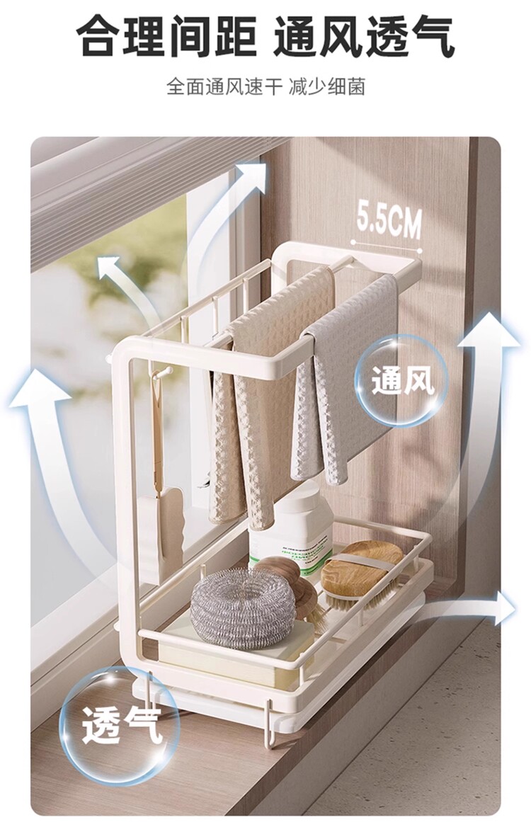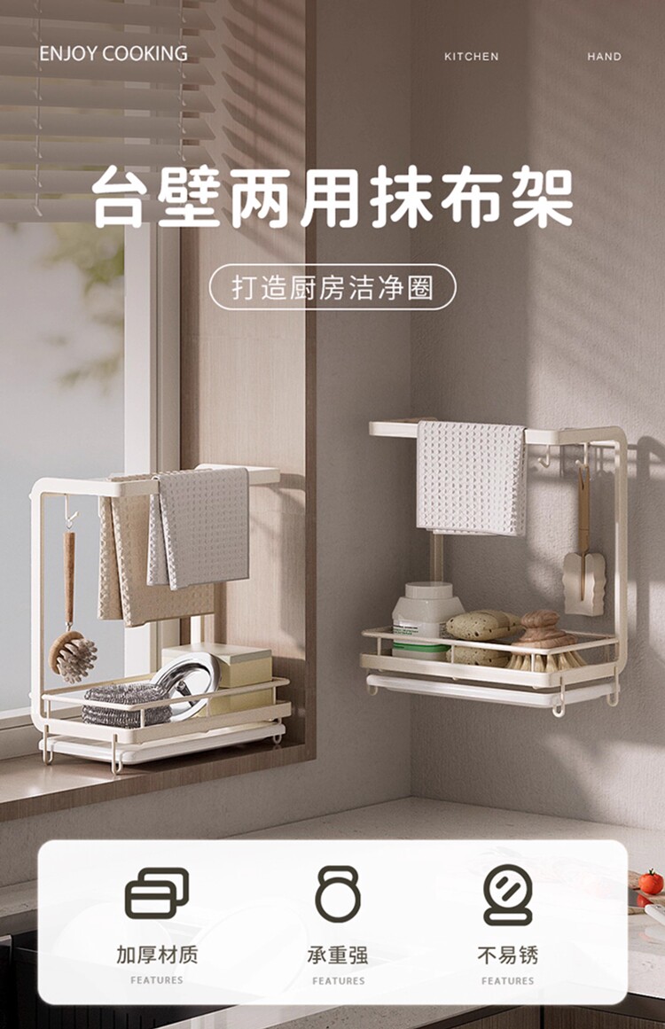 Kitchen Cloth Rack, Draining Storage Rack, Wall-Mounted, No-Drill Sink Dishcloth Holder, Sponge Storage Rack