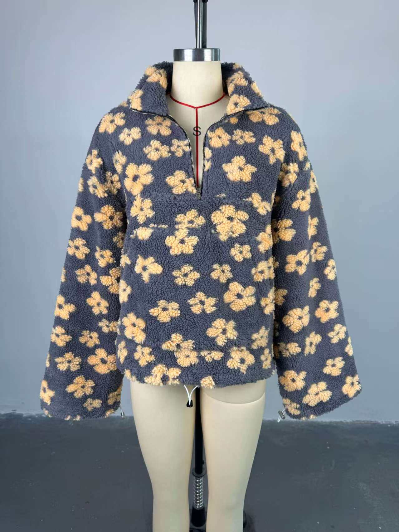 European and American Style New Fashion Loose Printed Half-Zip Stand Collar Long-Sleeve Sweatshirt Half Zip Loose Top