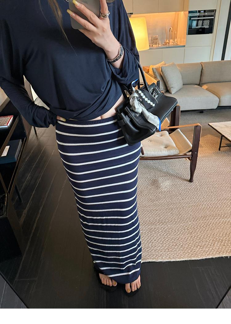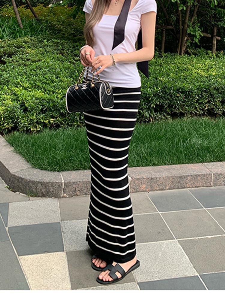 Summer Striped Thin Drapey Skirt for Women 2025 New High-Waisted Slimming Hip-Hugging Skirt Petite Elegant Long Skirt